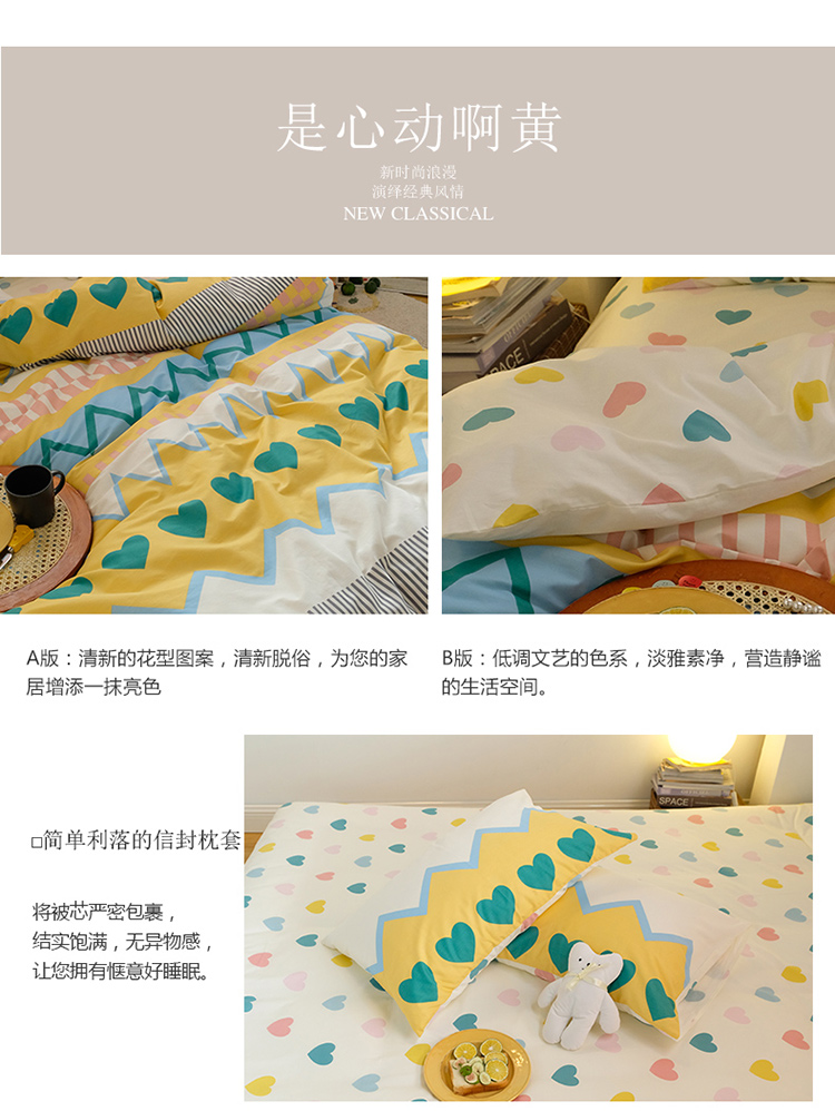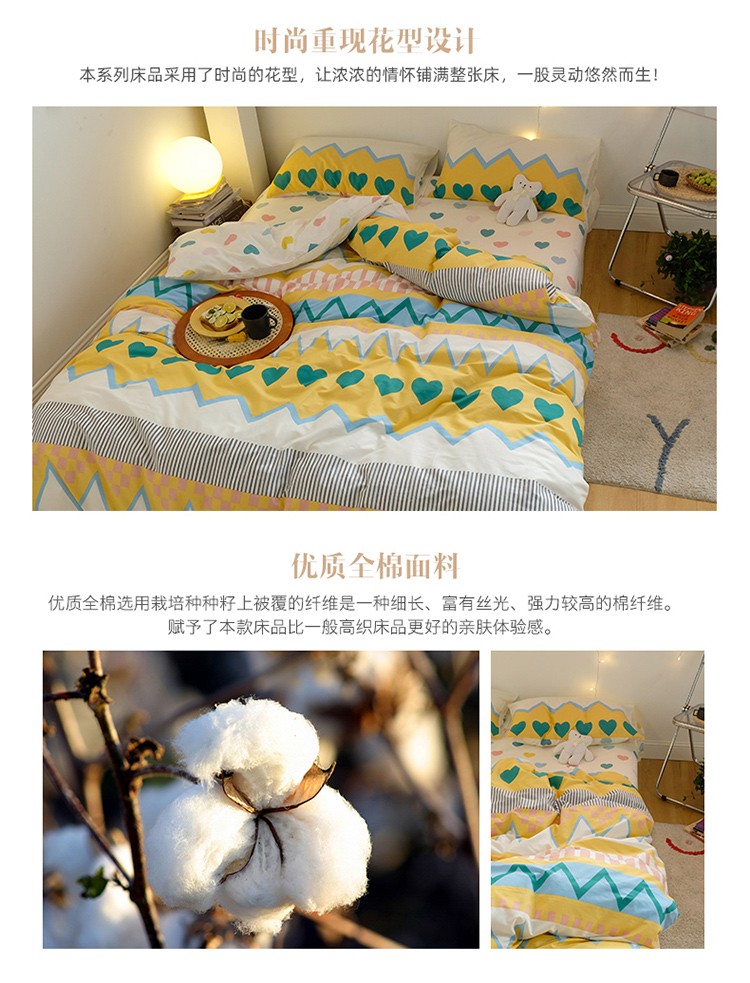 窝米2020秋季13370全棉四件套萌宠风系列 是心动啊黄