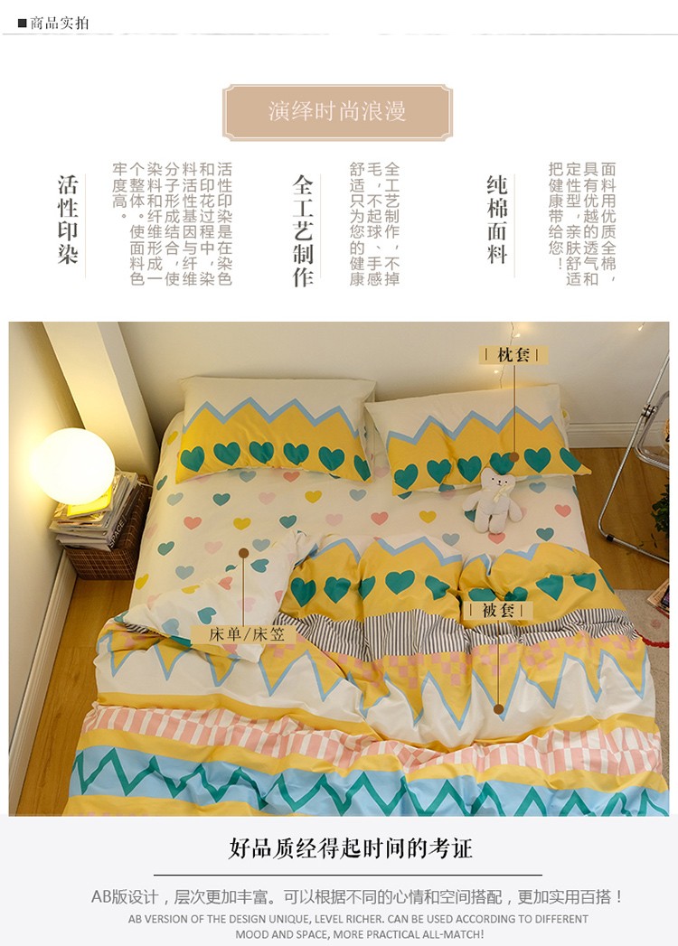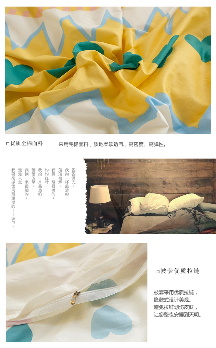 商品名称:窝米2020秋季13370全棉四件套萌宠风系列 是心动啊黄