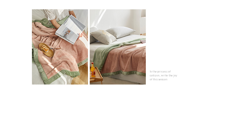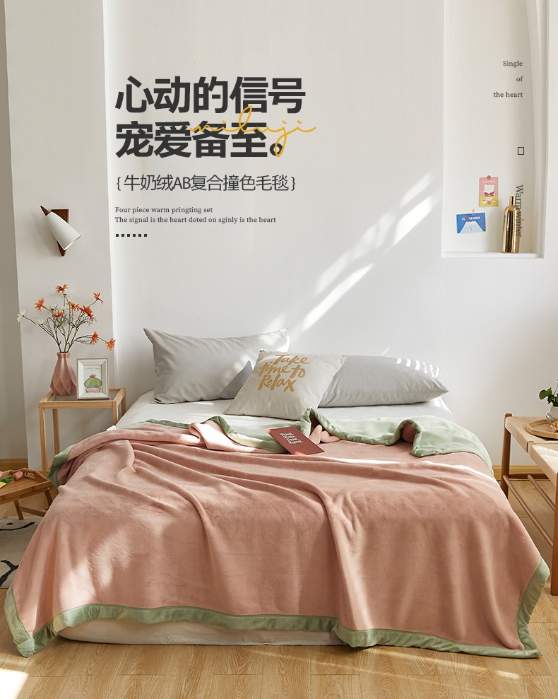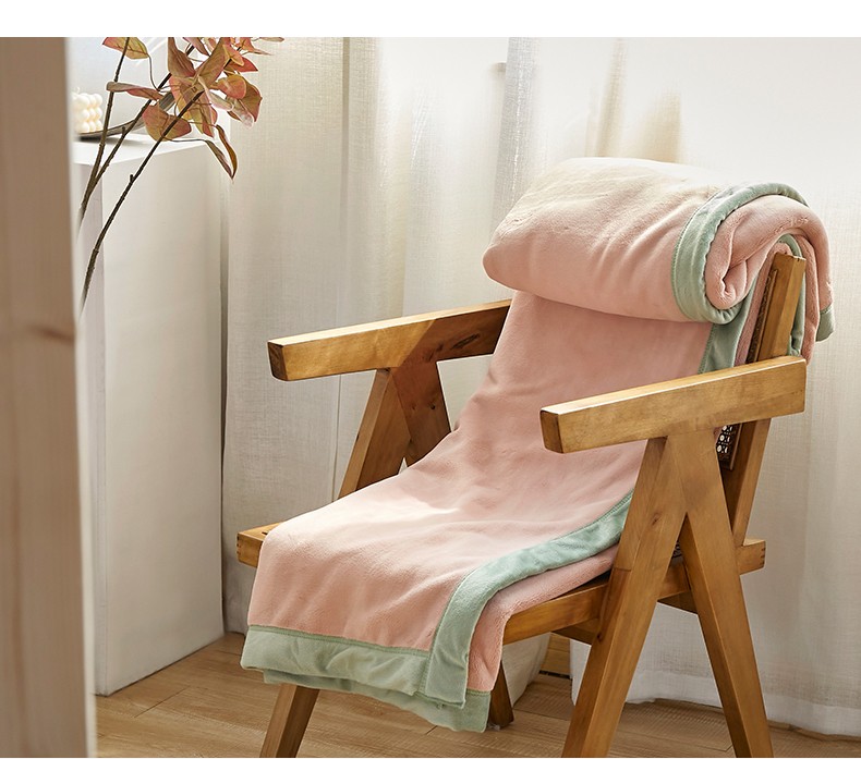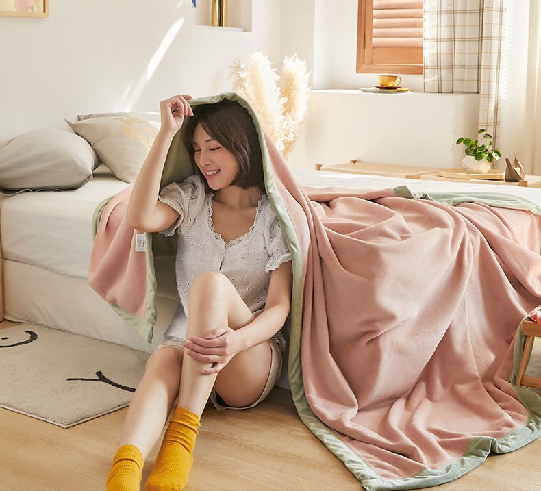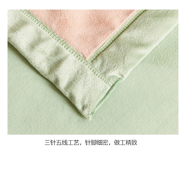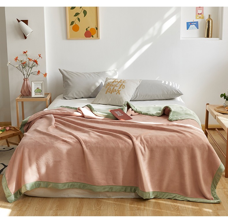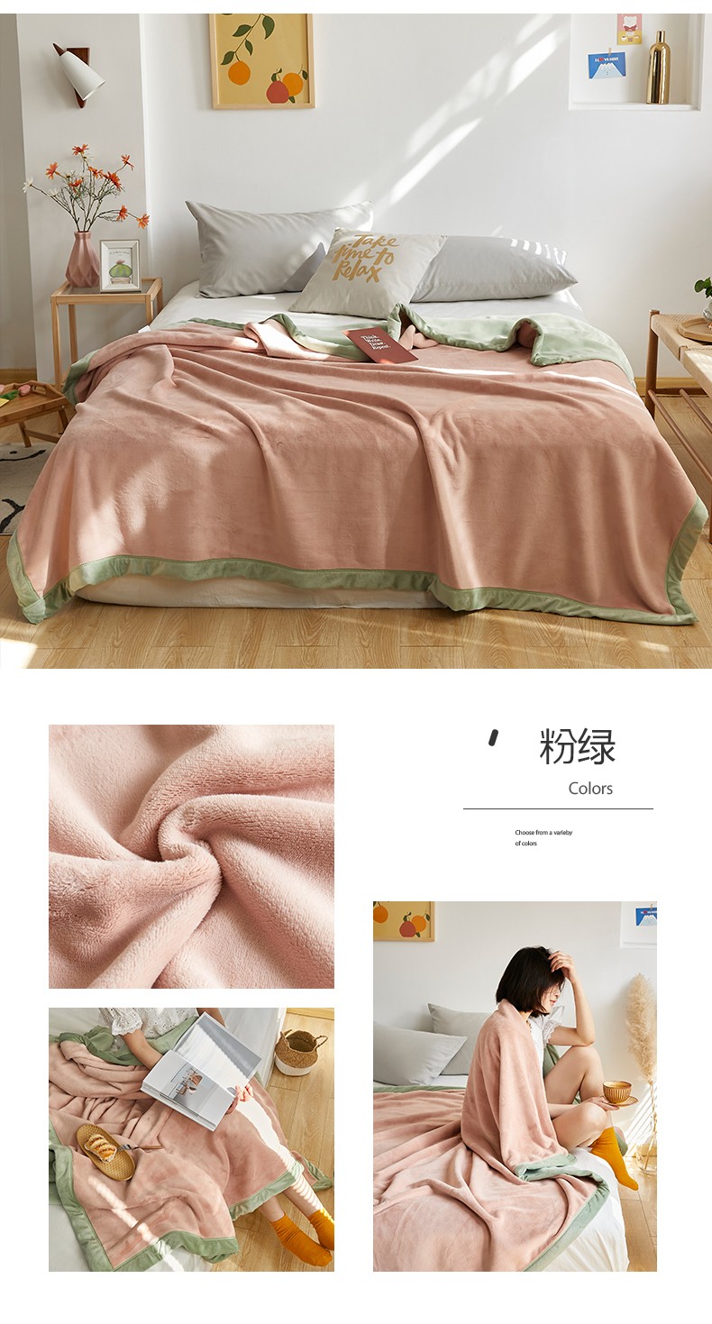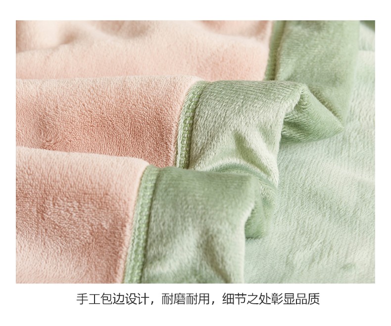 法芙娜家纺 新品 AB复合毯 牛奶绒加厚毛毯 粉绿