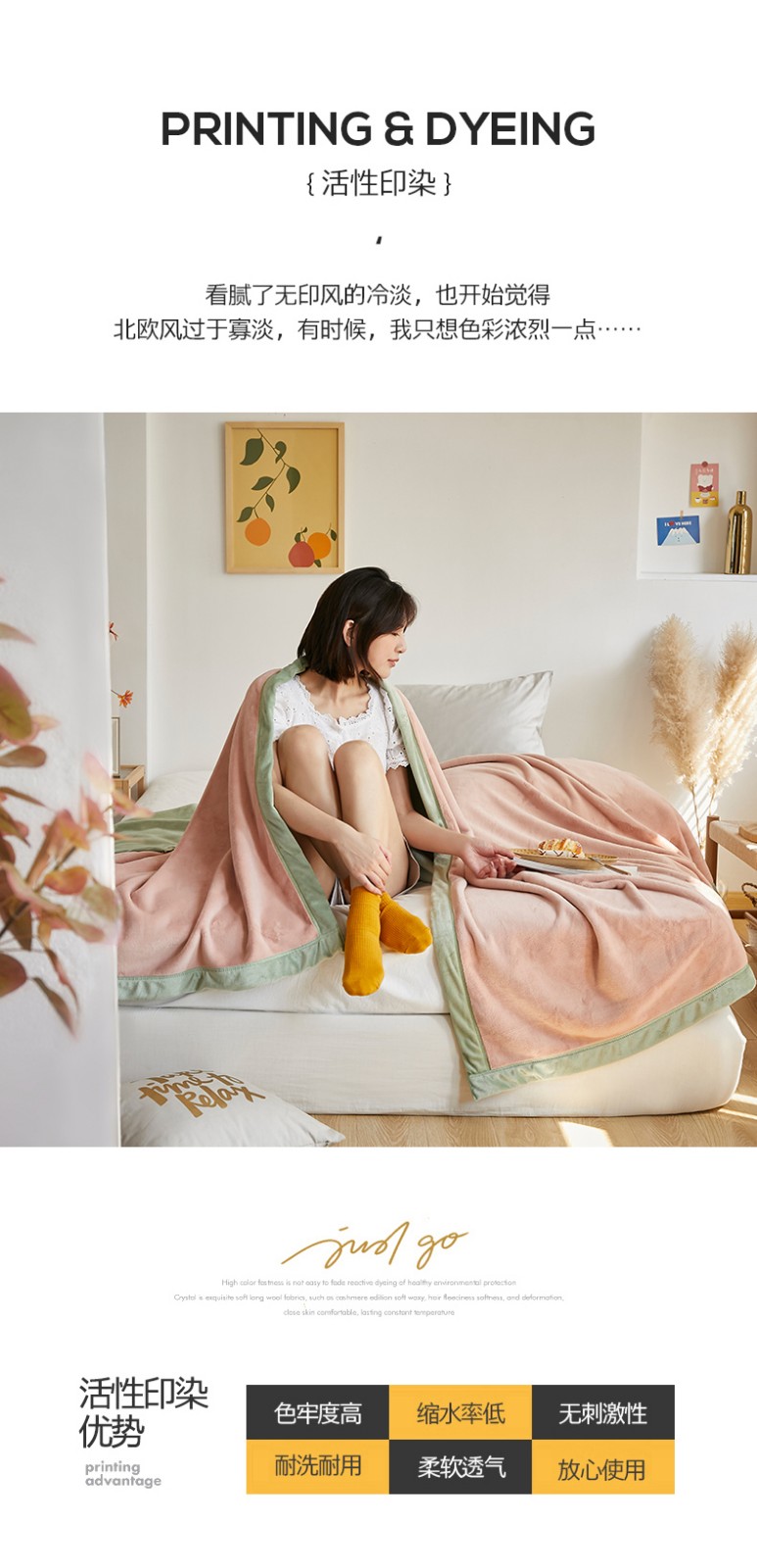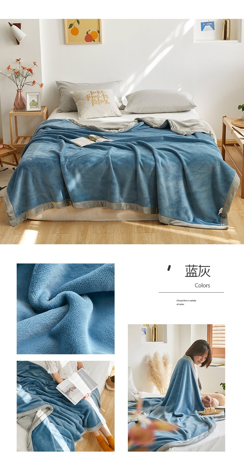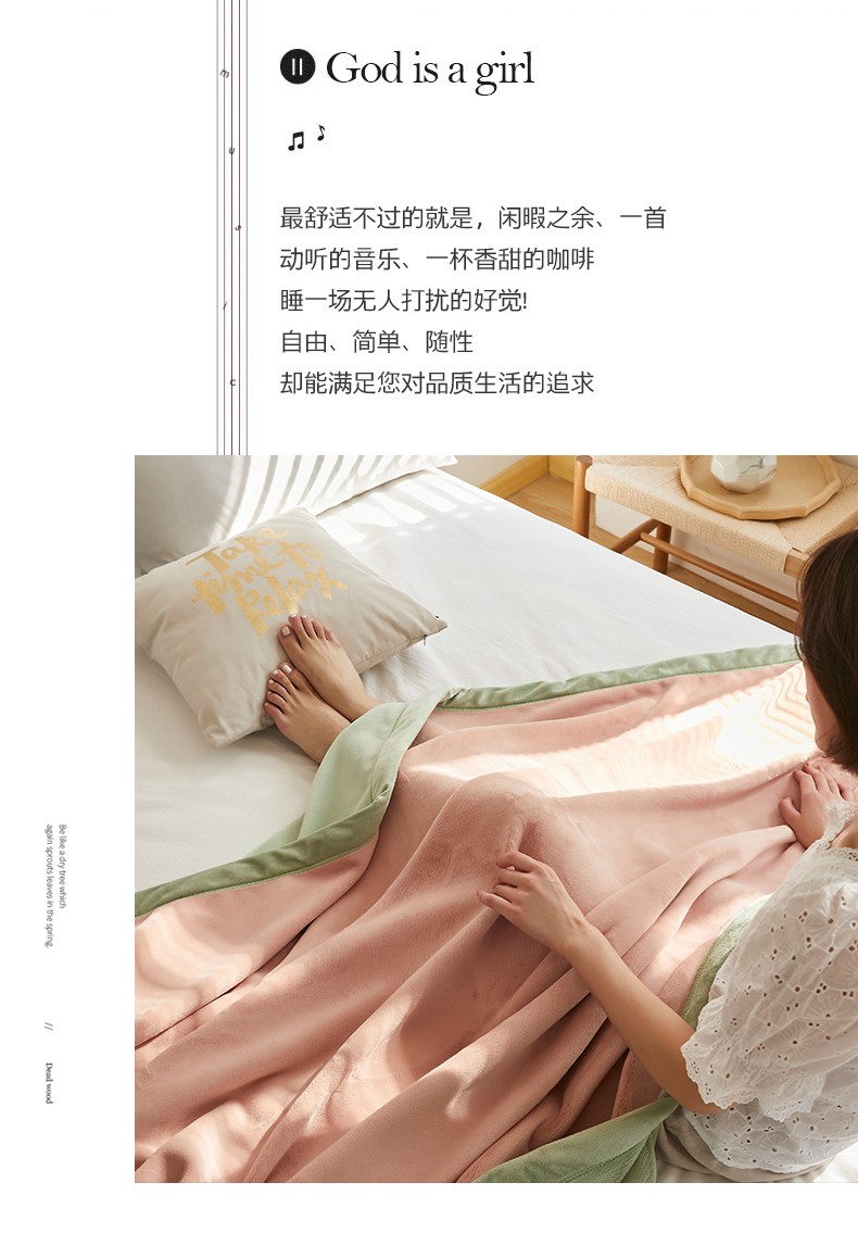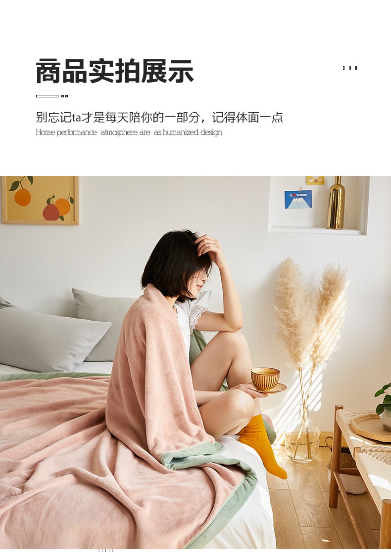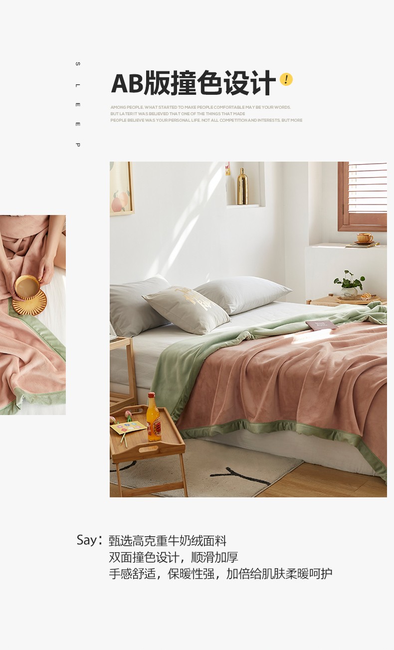 法芙娜家纺 新品 AB复合毯 牛奶绒加厚毛毯 粉绿