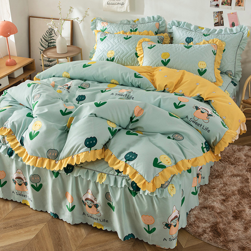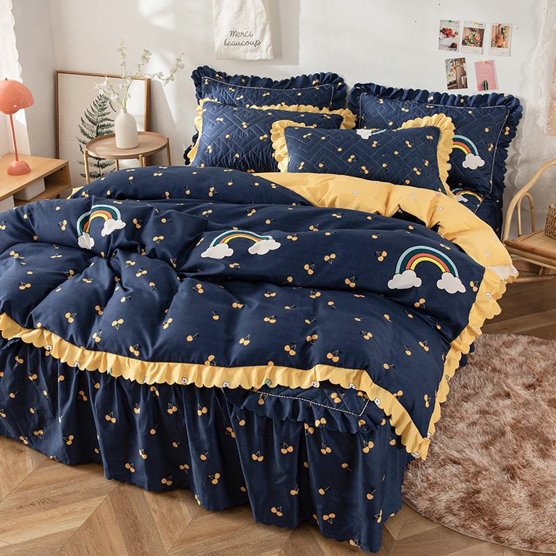 (总)纽缦 2020新款加厚磨毛夹棉床裙款四件套