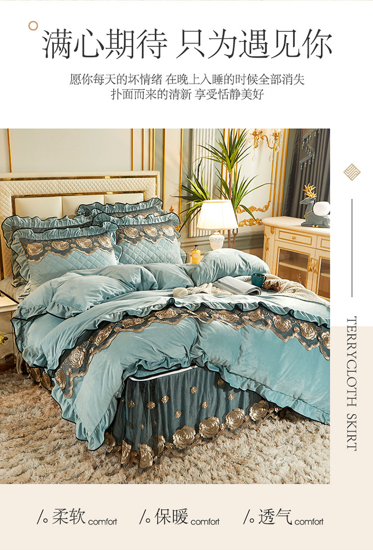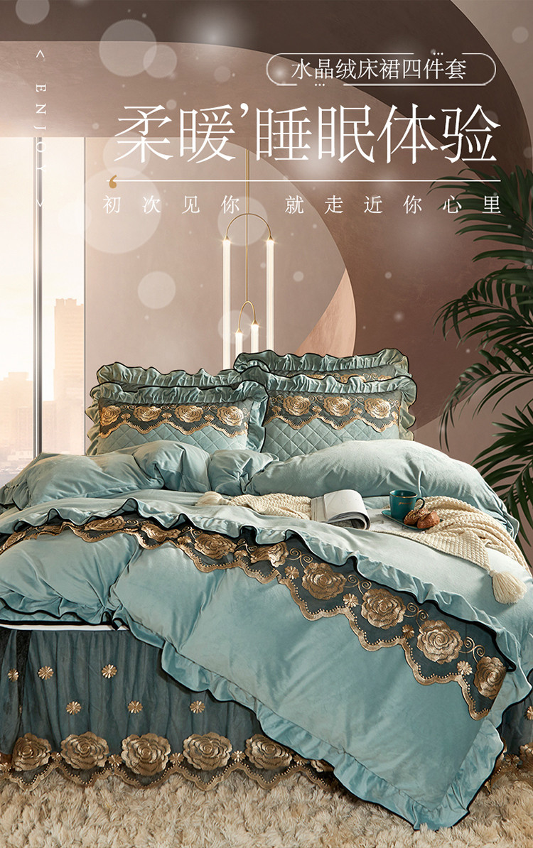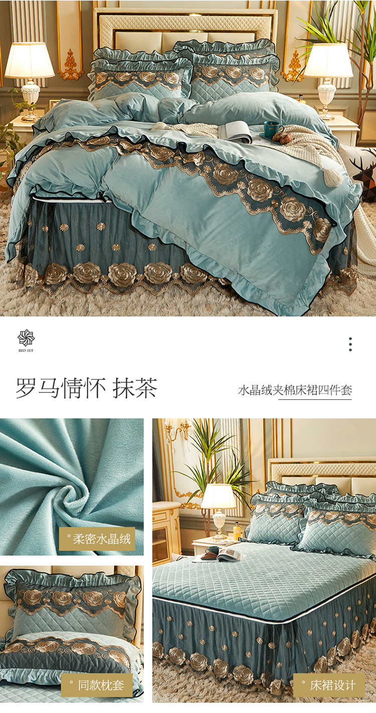 当前位置: 91家纺网 > 商品网购 > 床品套件 > 四件套 > 水晶绒四件套 > 网红馆 2025新款罗马情怀水晶绒床裙四件套 罗马情怀抹茶