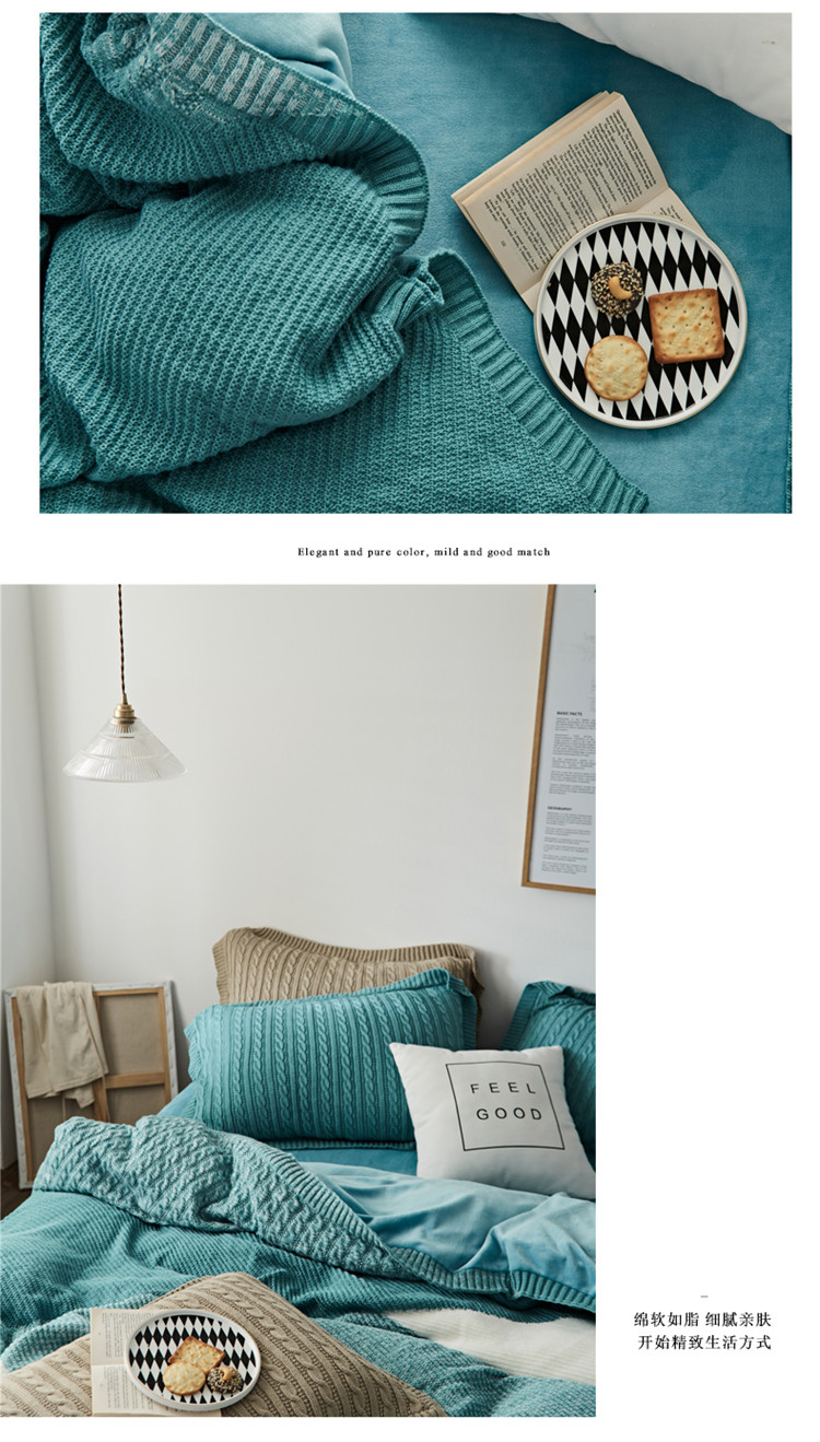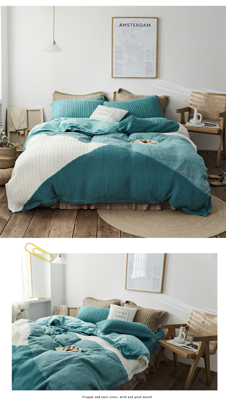 暖绵绵家纺 新款黛妮牛奶绒四件套 拼绿