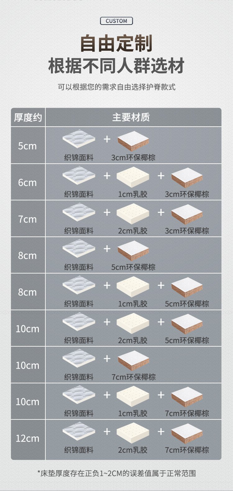 (总)时奥家纺 2025新款宝宝绒环保椰棕床垫,3分棕(5cm),3分棕+1分乳胶(5cm),3分棕+2分乳胶(6cm),3分棕+3分乳胶(7cm),5分棕(7cm),5分棕+1分乳胶(7cm),5分棕+2分乳胶(8cm),5分棕+3分乳胶(9cm),7分棕(8cm),7分棕+1分乳胶(9cm),7分棕+2分乳胶(10cm),7分棕+3分乳胶(11cm),10分棕(11cm),10分棕+1分乳胶(12cm),10分棕+2分乳胶(13cm),10分棕+3分乳胶(15cm)