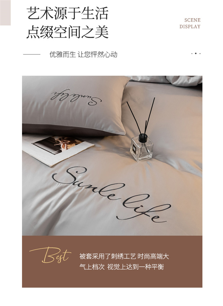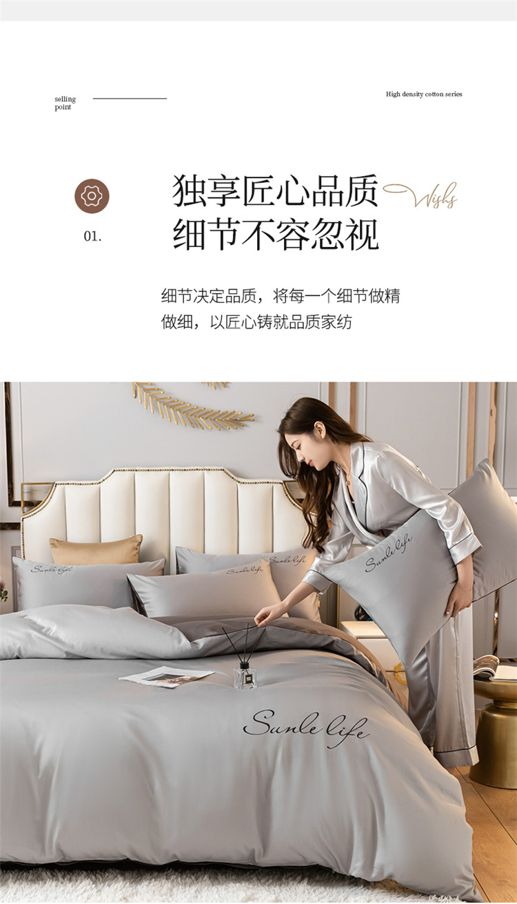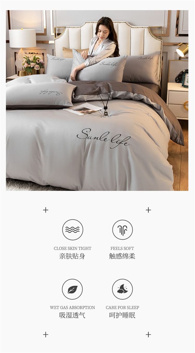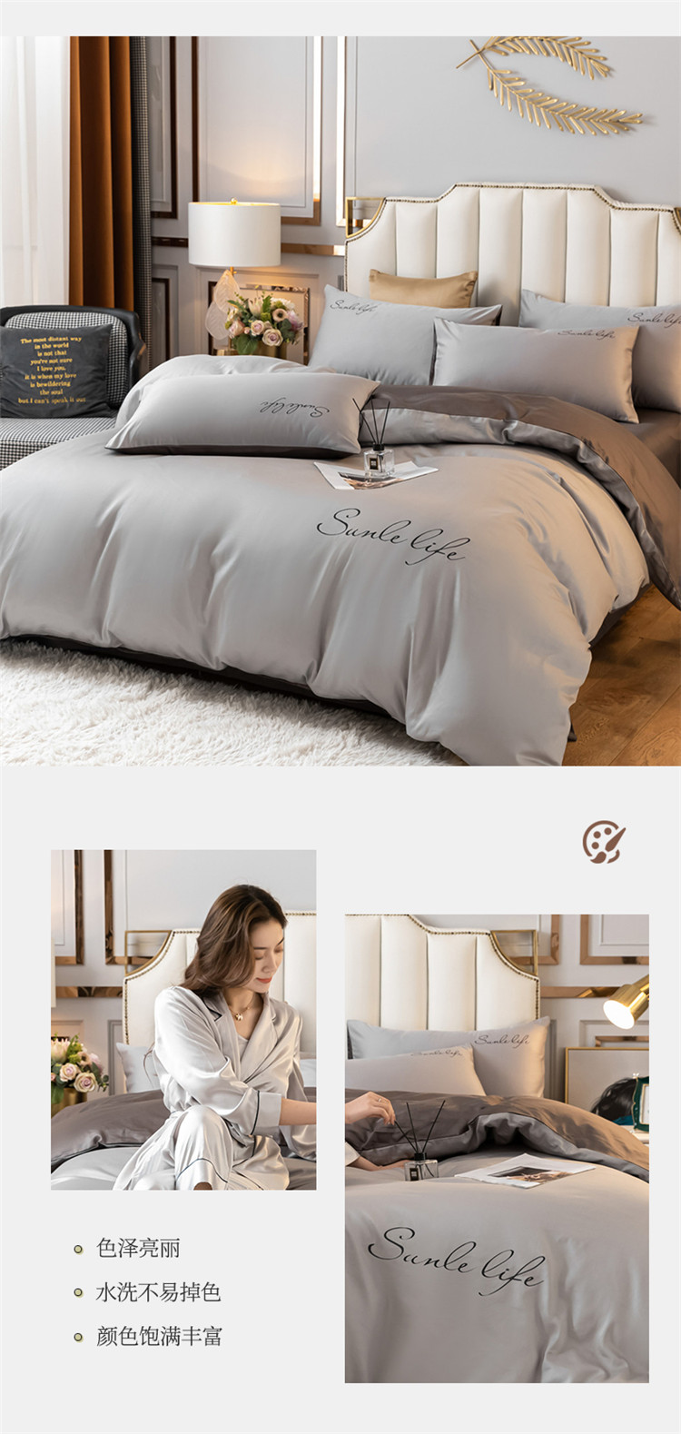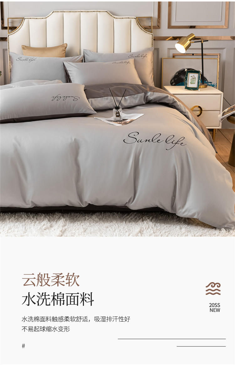 商品名称:古吉梦 2024新款水洗棉双拼刺绣单被套 双拼-浅灰
