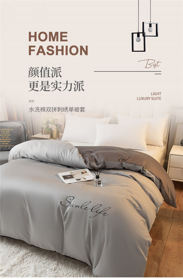 古吉梦 2024新款水洗棉双拼刺绣单被套 双拼-浅灰