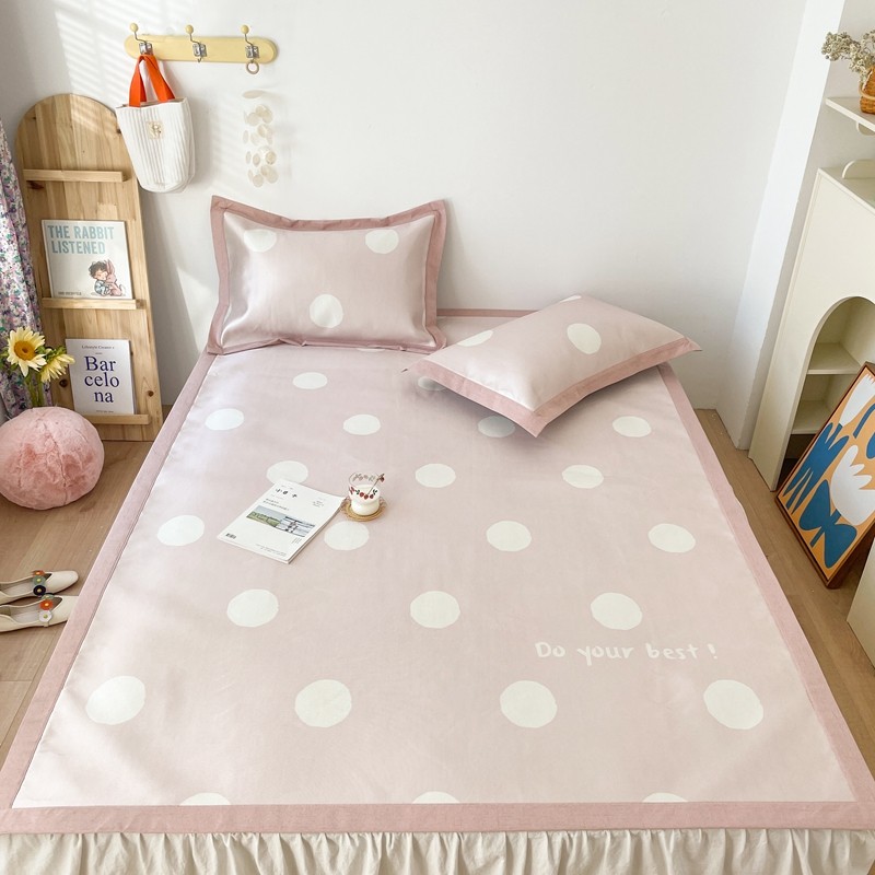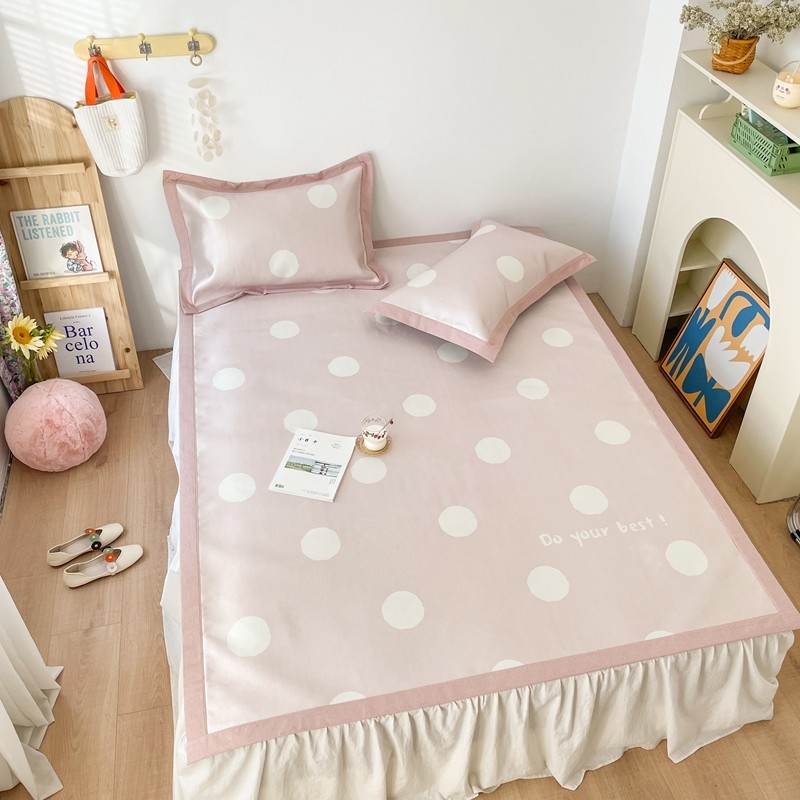 时年 2021新款水洗养生冰丝凉席 波点粉