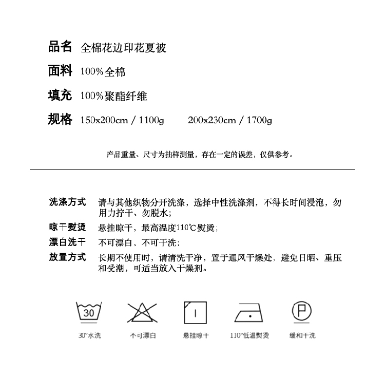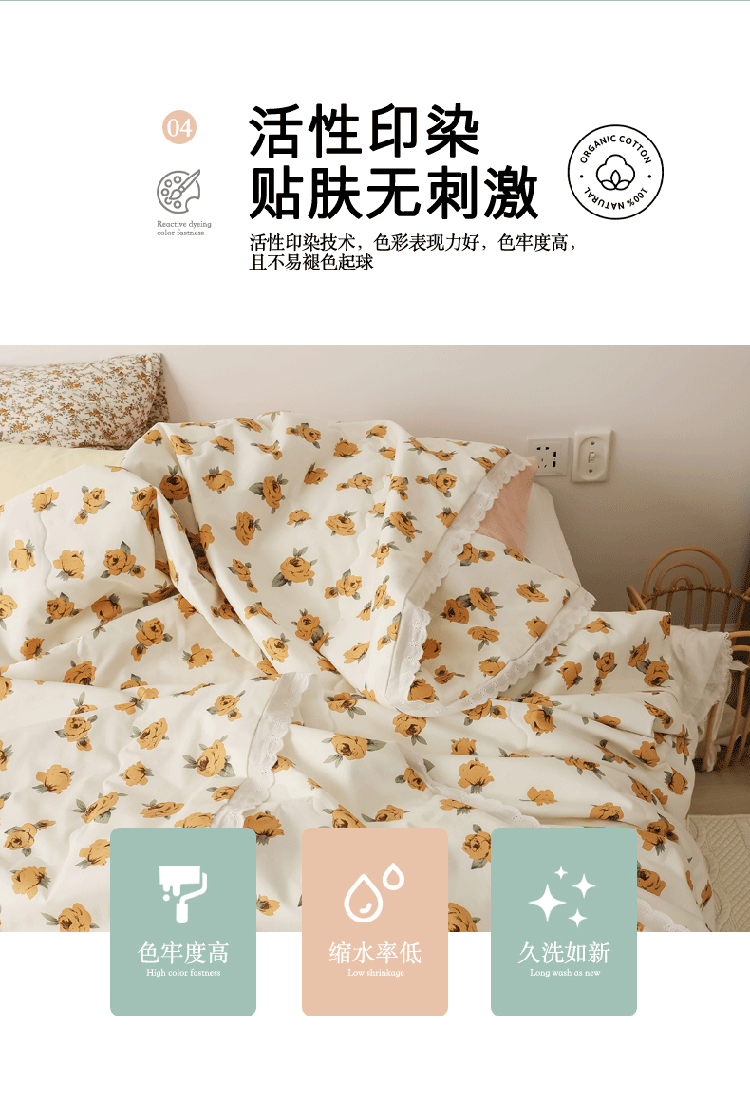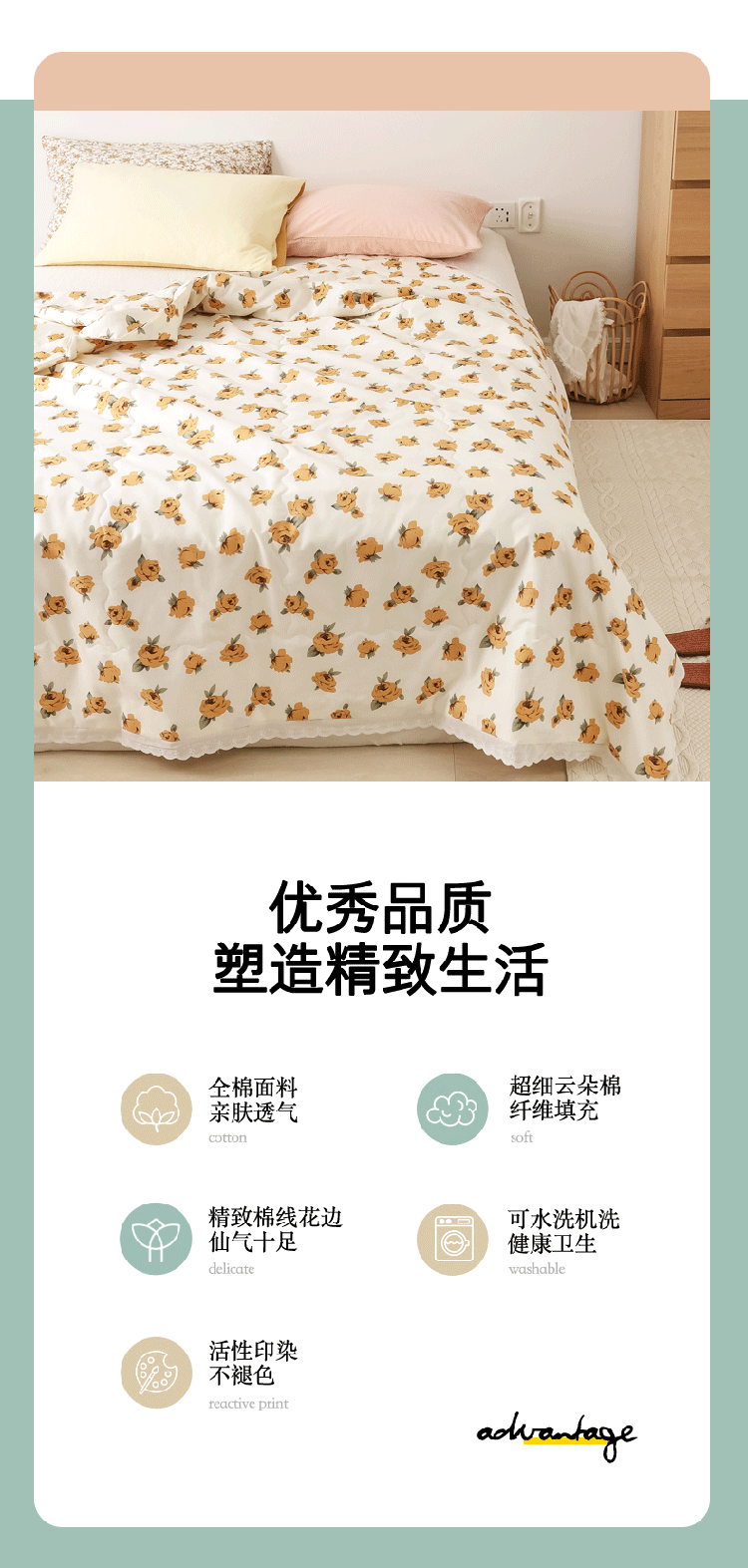商品名称:丽笙被芯新款全棉印花花边夏被第 一批瑞士花园LS007