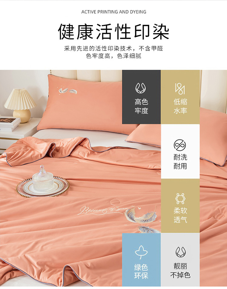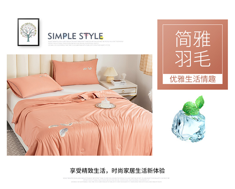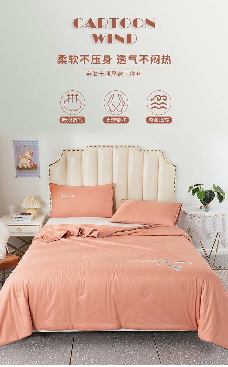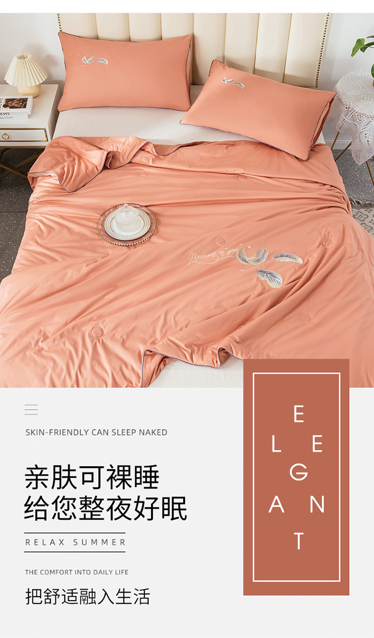 芃成家纺 2021新款针织棉绣花夏被 羽毛豆沙