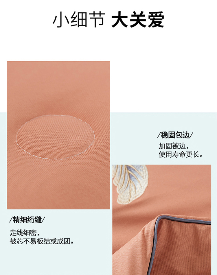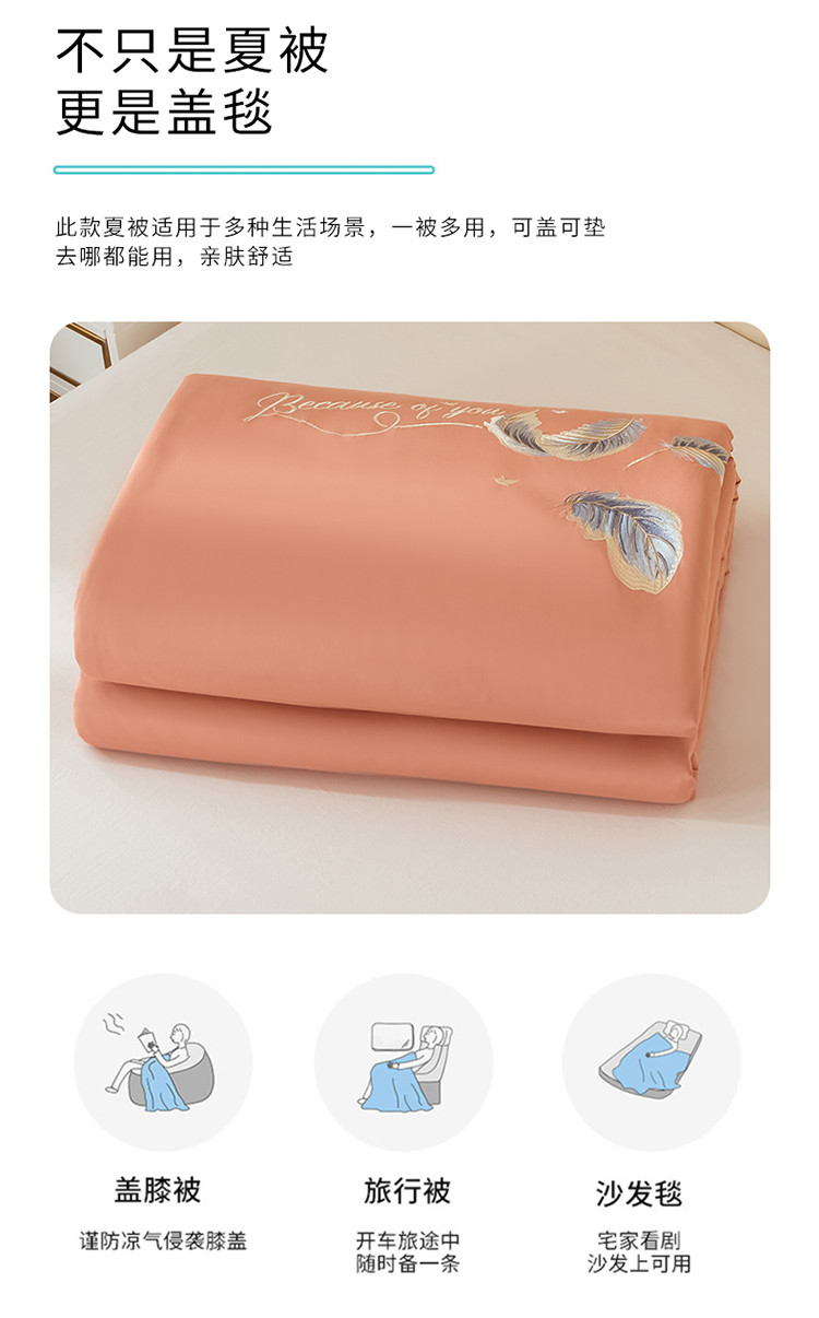 商品名称:芃成家纺 2021新款针织棉绣花夏被 羽毛豆沙