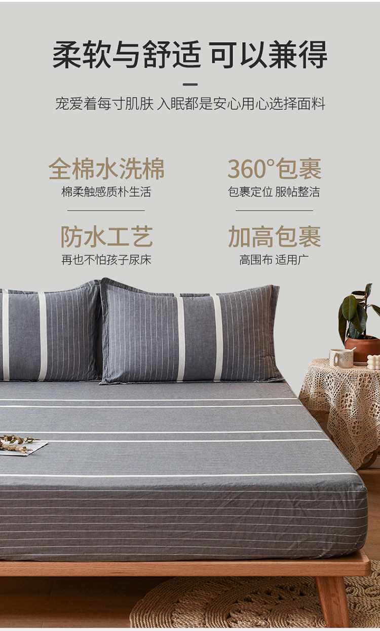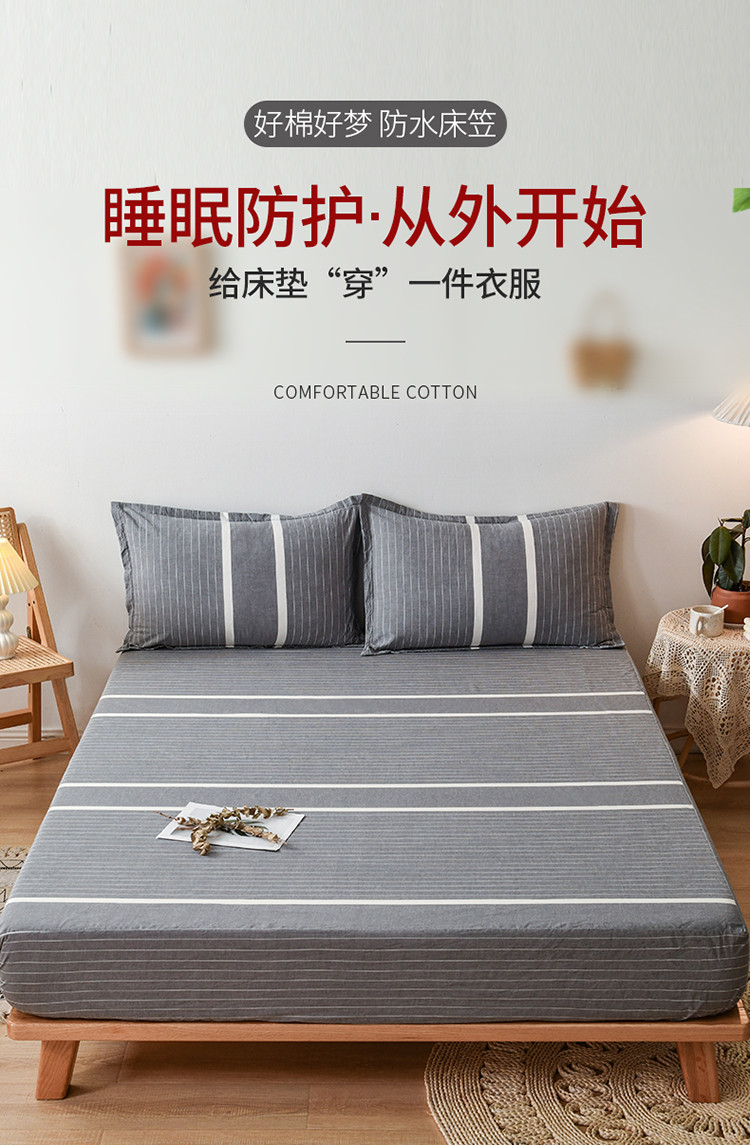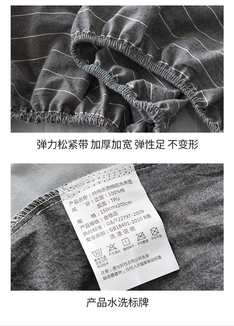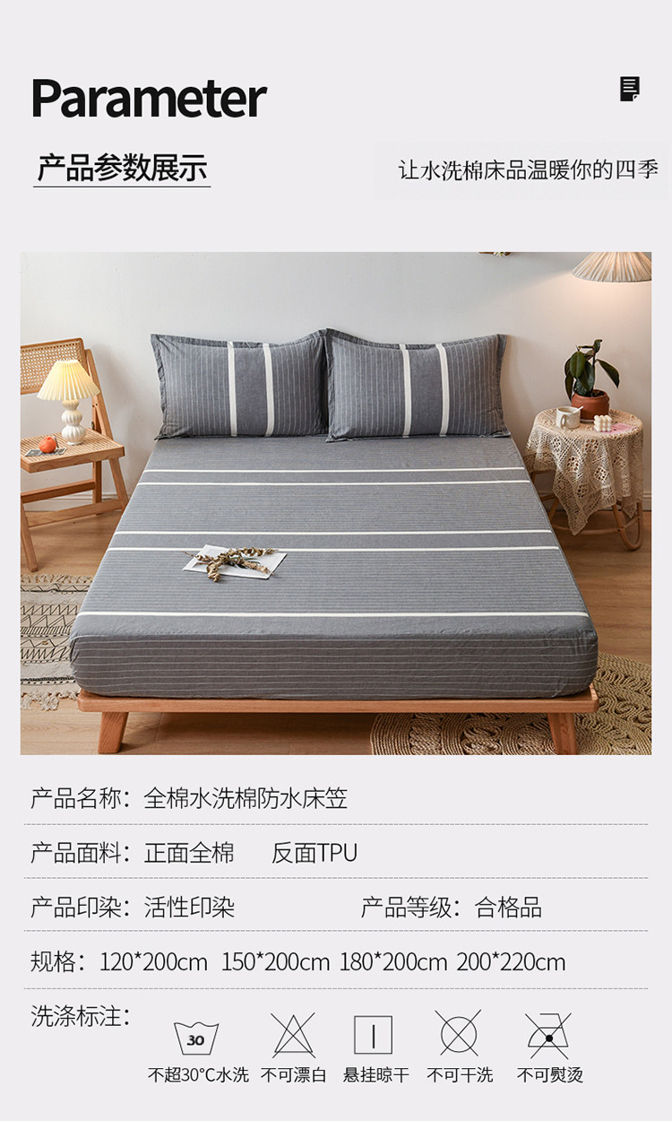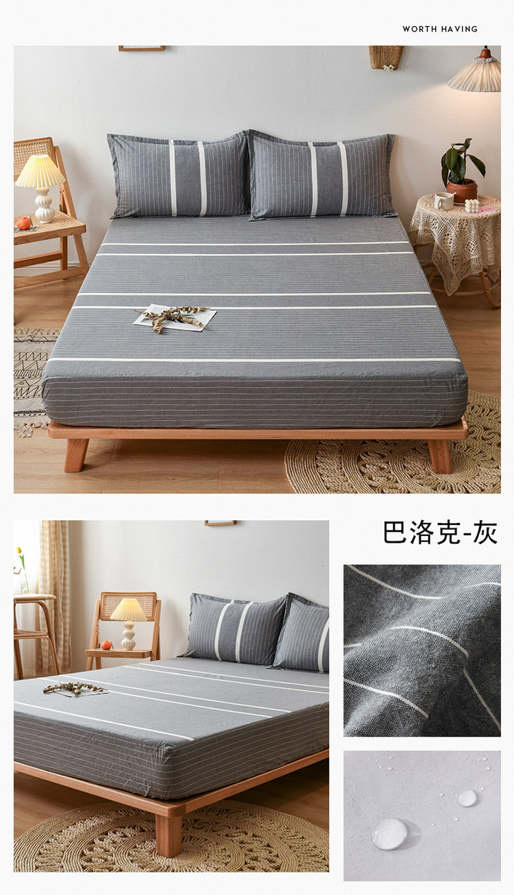 (总)床笠人家 2023新款全棉水洗棉防水床笠,巴洛克-灰,白小格,灰小格,蓝格,绿小格,米小格,雪山白,玉格,珍珠灰