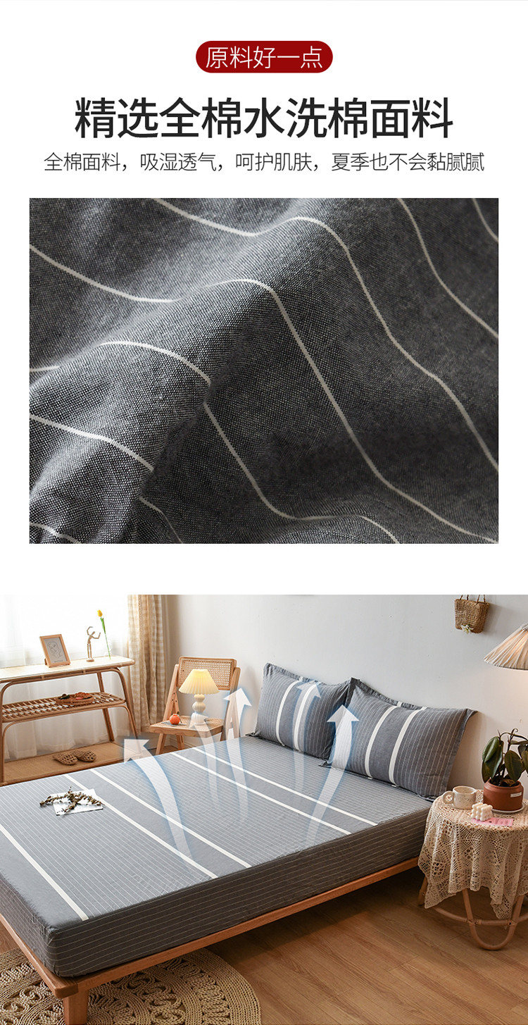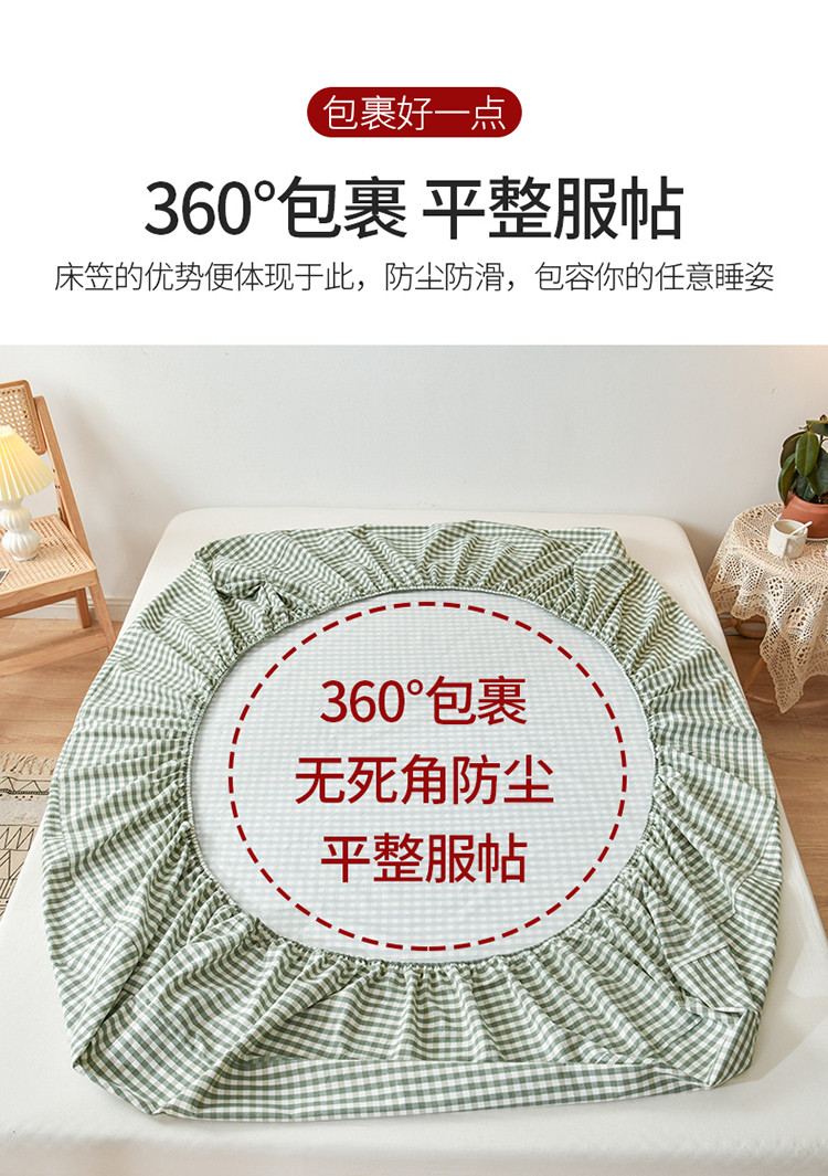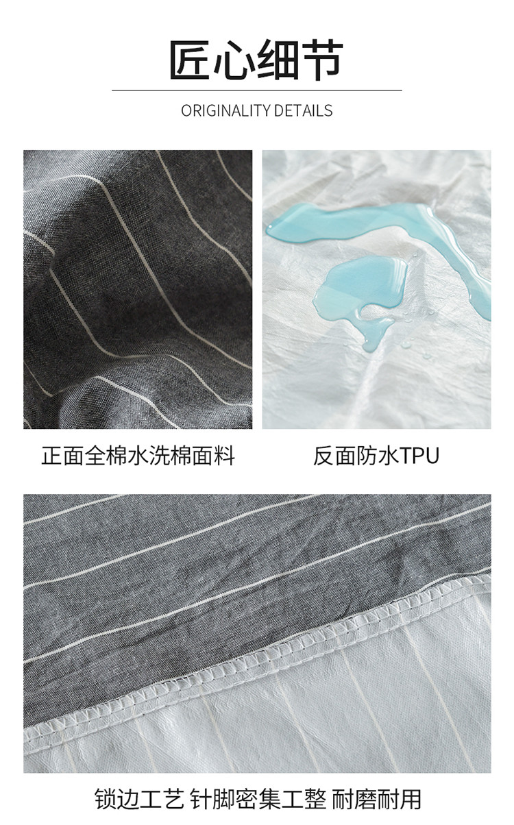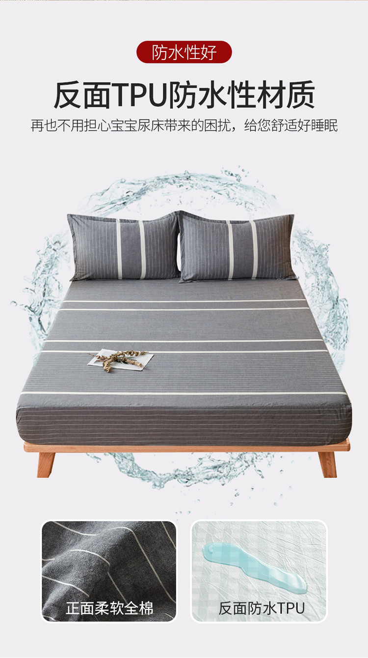 (总)床笠人家 2023新款全棉水洗棉防水床笠,巴洛克-灰,白小格,灰小格,蓝格,绿小格,米小格,雪山白,玉格,珍珠灰