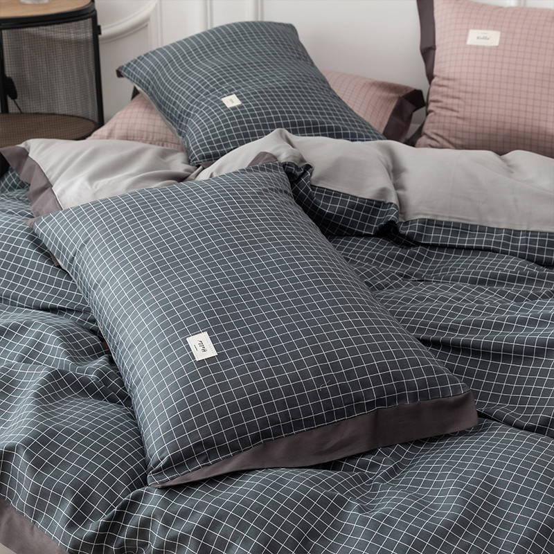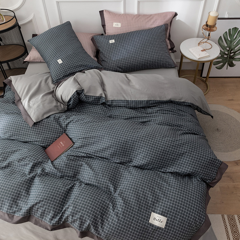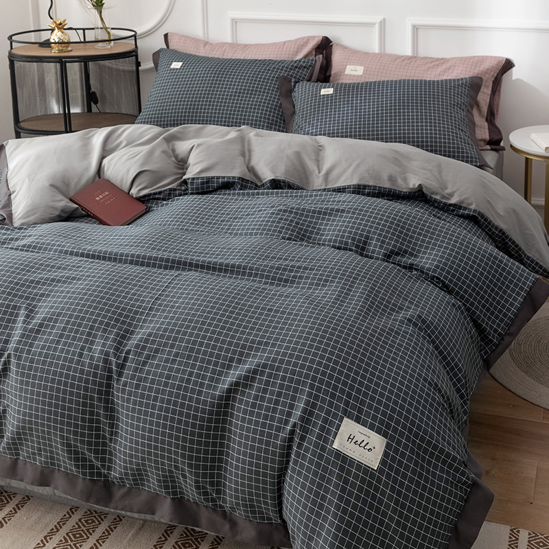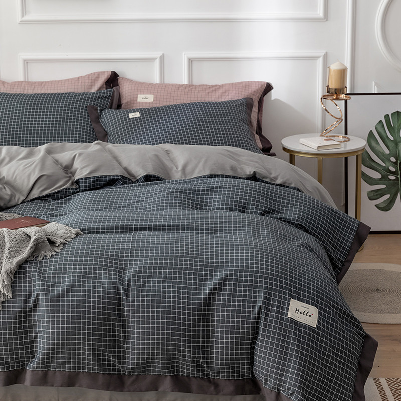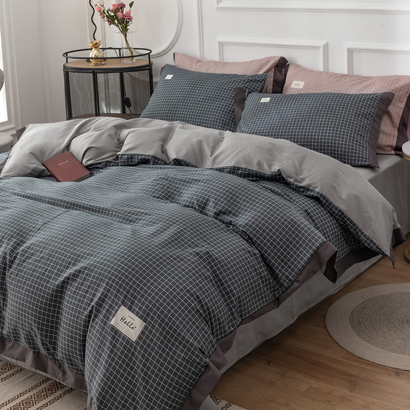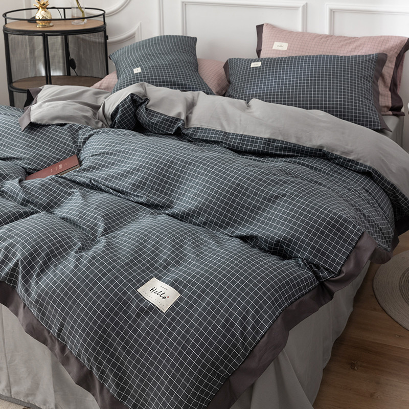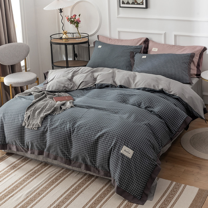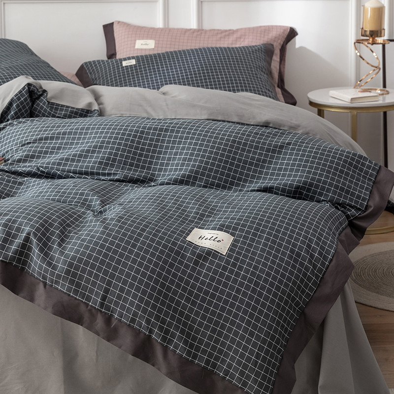 商品名称:花言狐语2025新款全棉色布13372拼角工艺款四件套 米兰