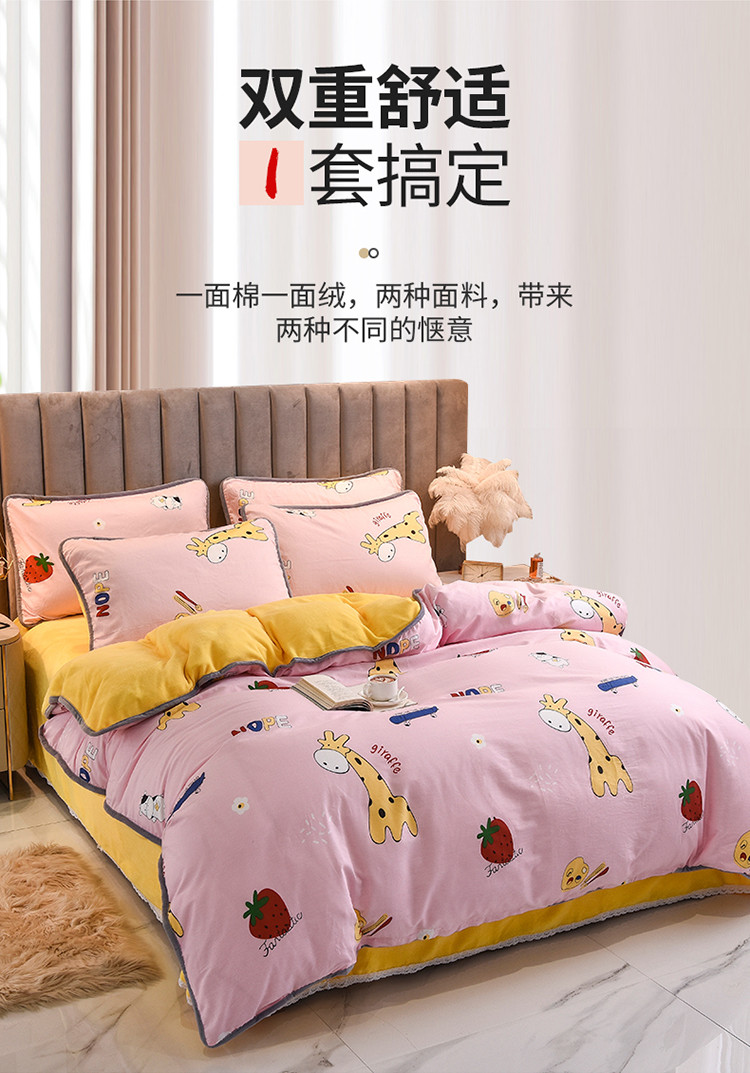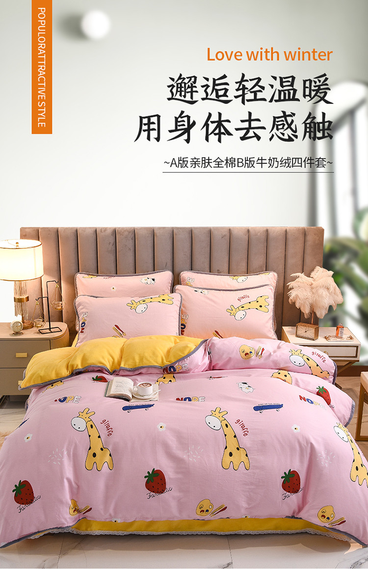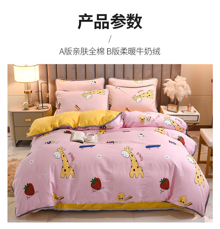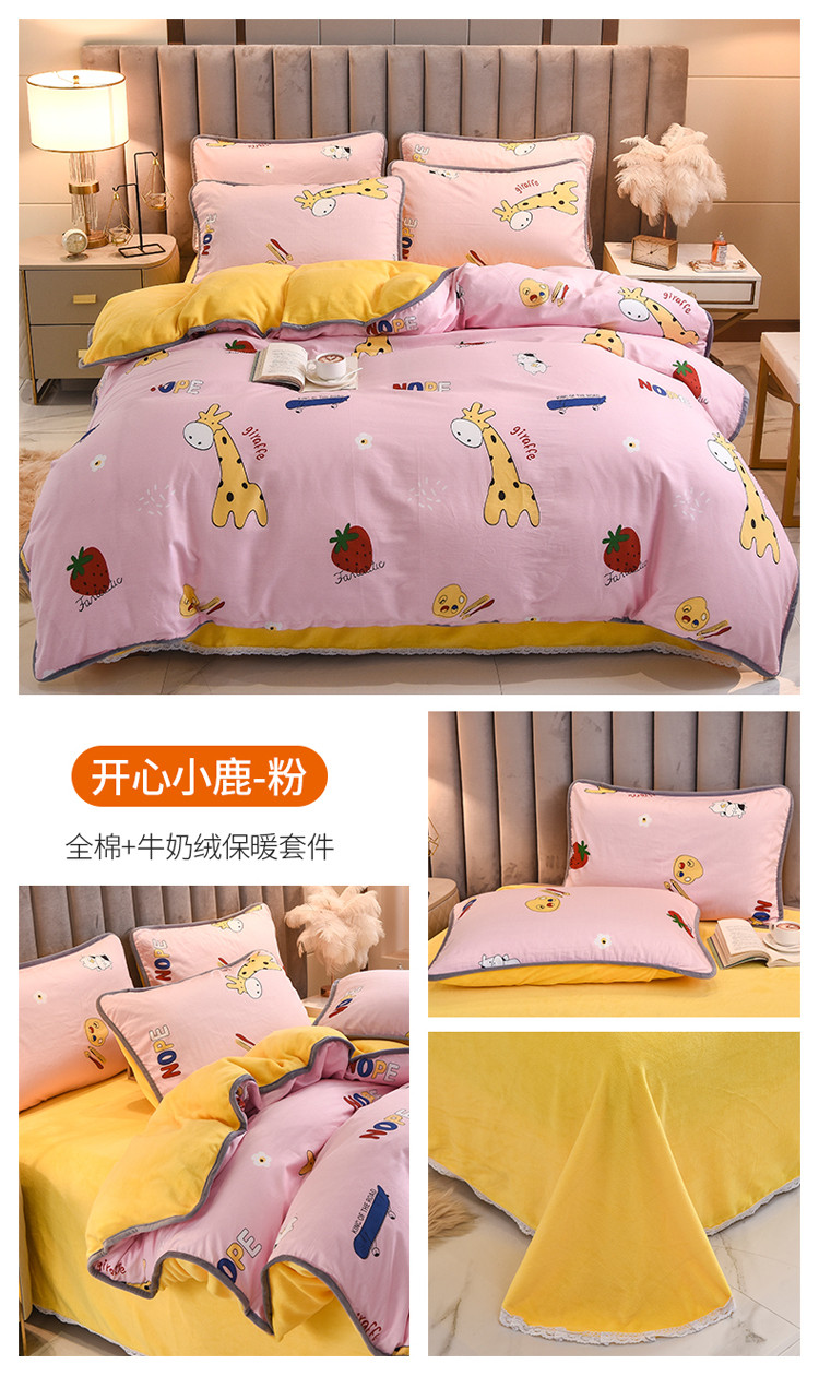 当前位置: 91家纺网 > 商品网购 > 床品套件 > 四件套 > 牛奶绒四件套 > 琪琪阁 2021新款全棉+牛奶绒四件套开心小鹿-粉