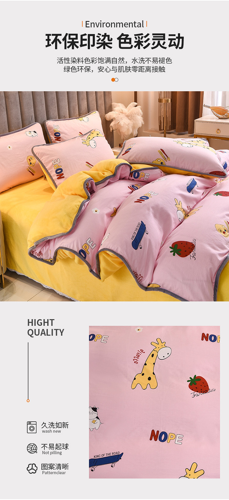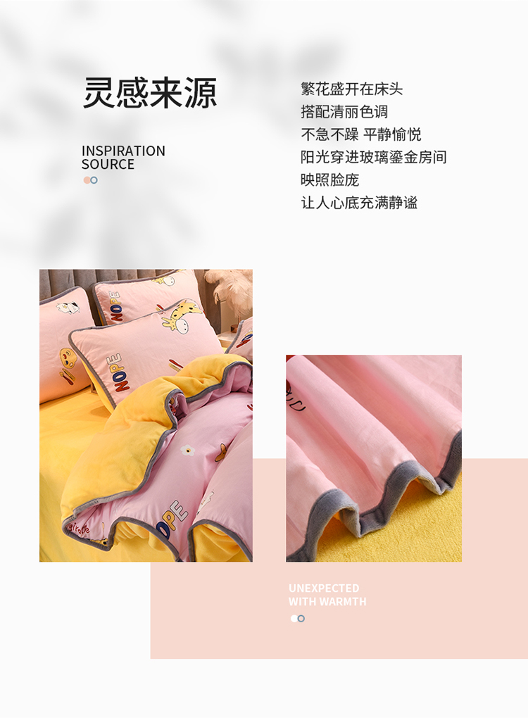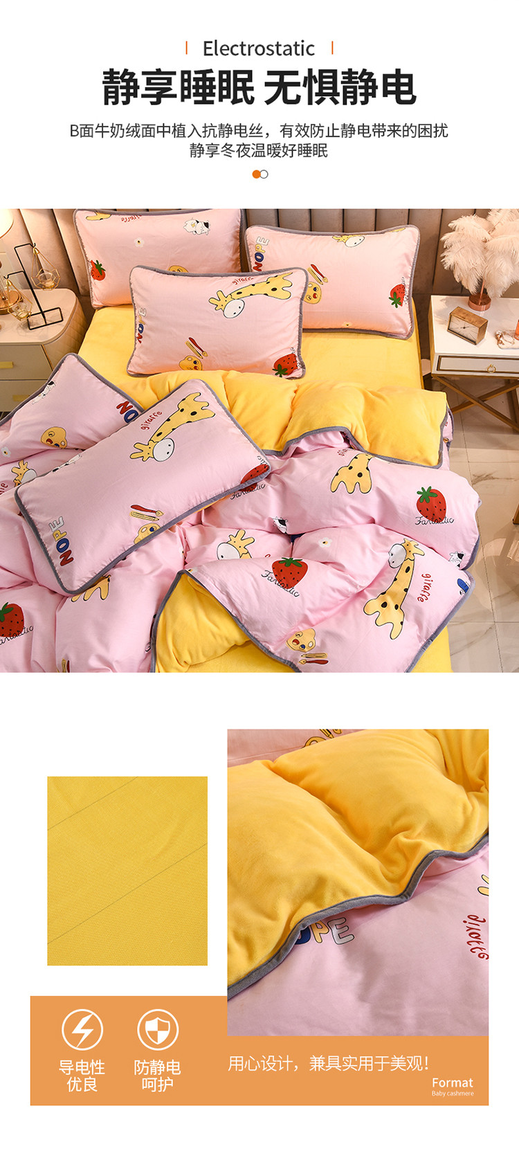 当前位置: 91家纺网 > 商品网购 > 床品套件 > 四件套 > 牛奶绒四件套 > 琪琪阁 2021新款全棉+牛奶绒四件套开心小鹿-粉