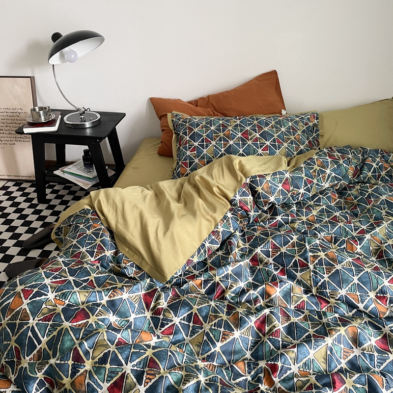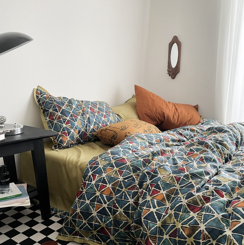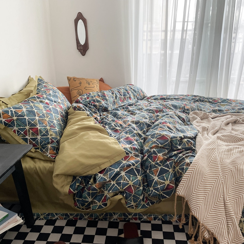 (总)恋恋三季 2025新款中古风色织水洗棉四件套-琉璃伯爵,琉璃伯爵【枕套bv绿+藏蓝】,琉璃伯爵【枕套混搭bv绿】,琉璃伯爵【枕套混搭藏蓝】,琉璃伯爵【枕套条纹】