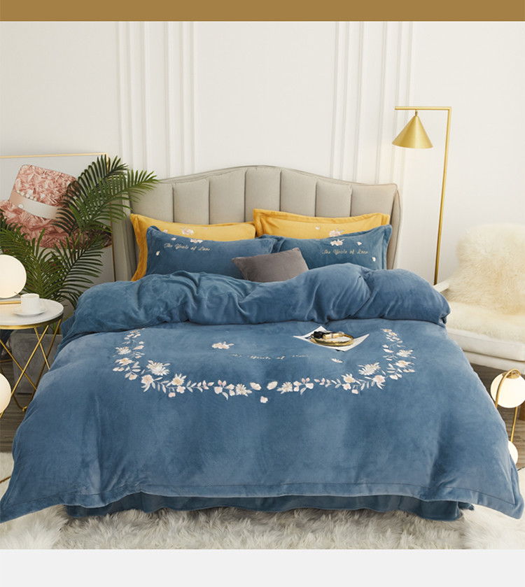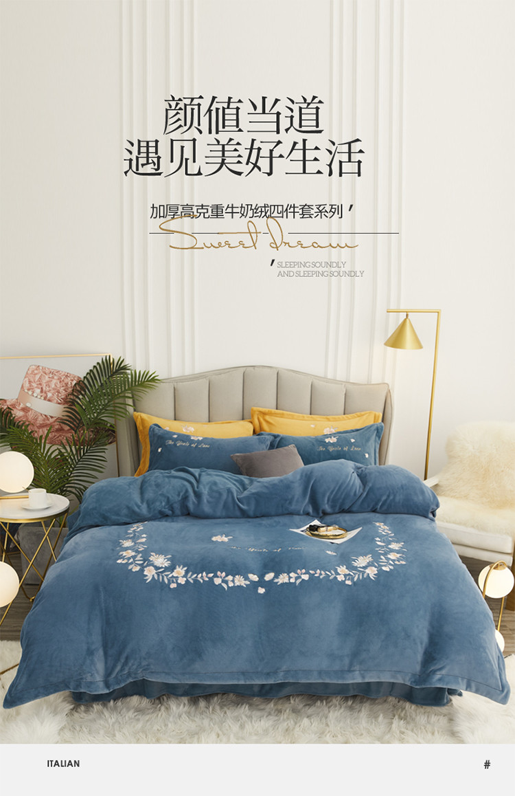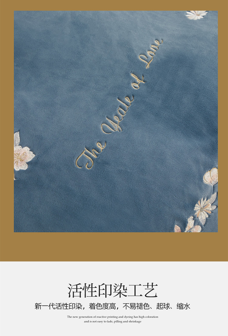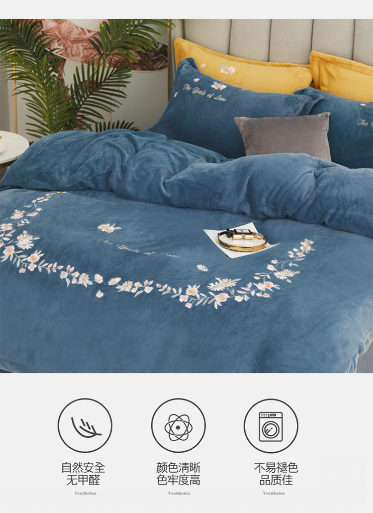 商品名称:锦罗绣 2021新款高端牛奶绒刺绣款四件套 花好月圆-深蓝