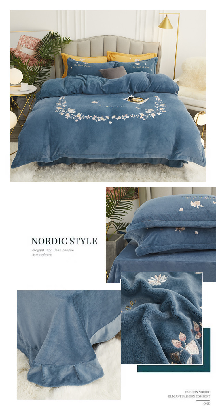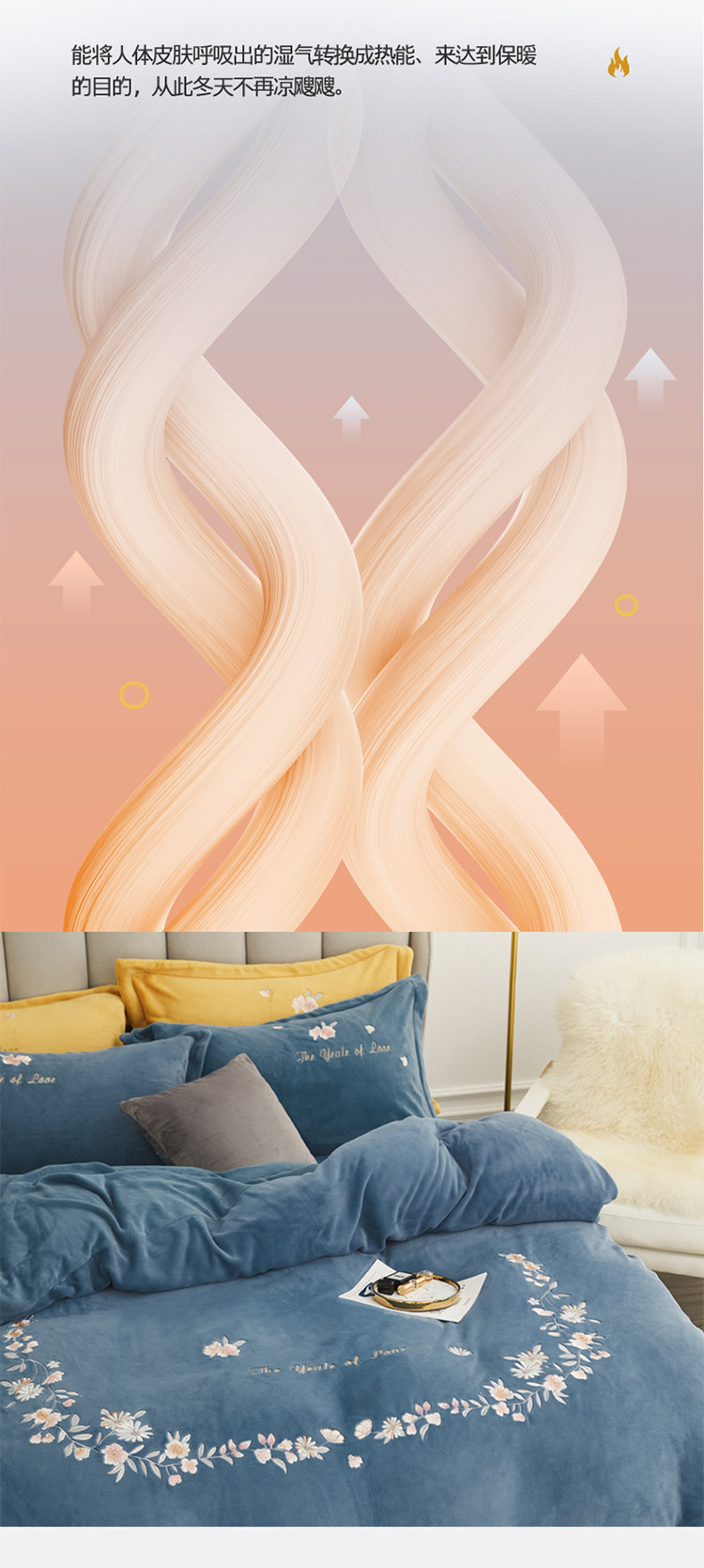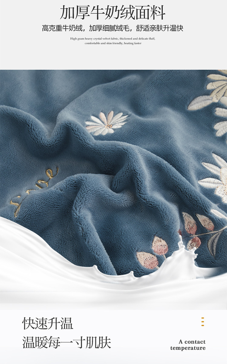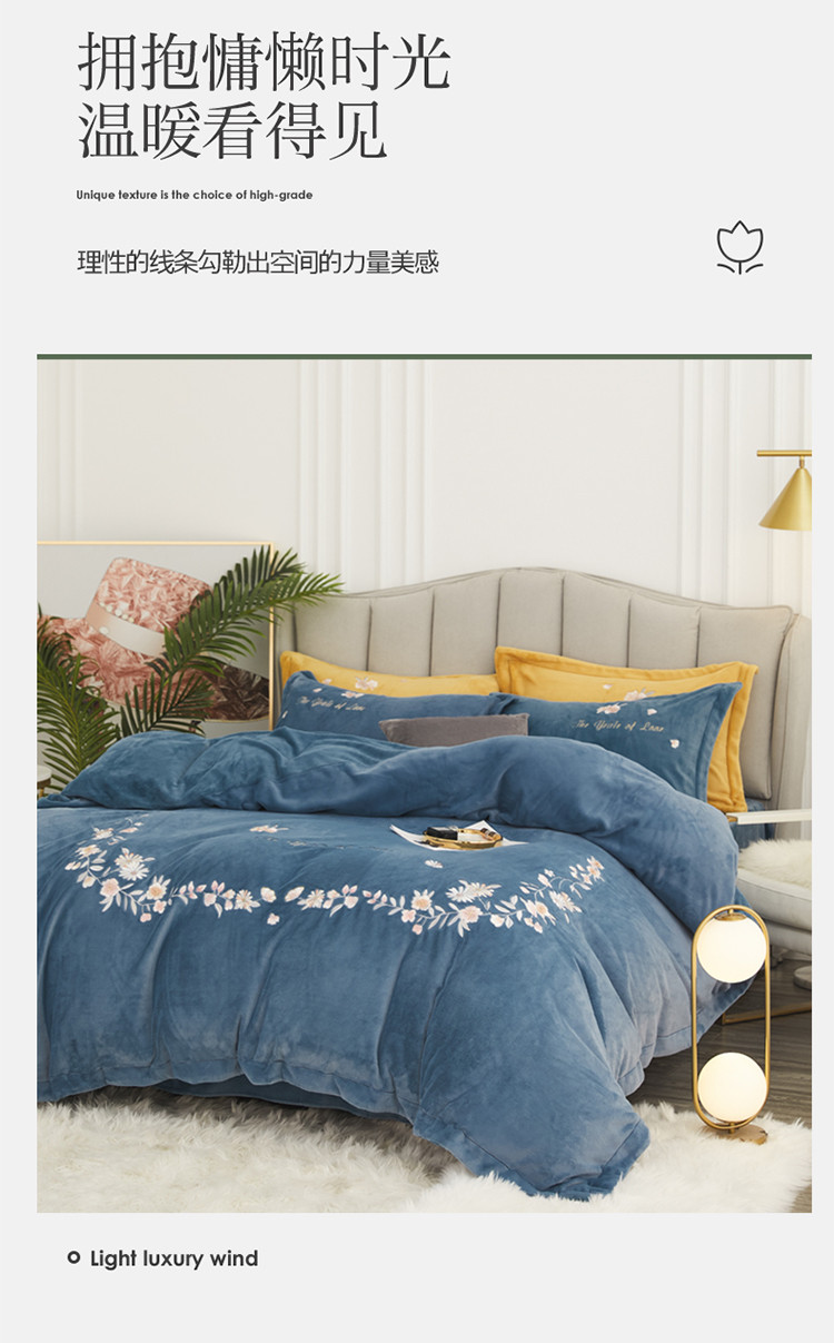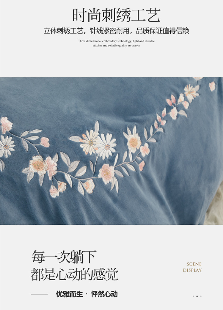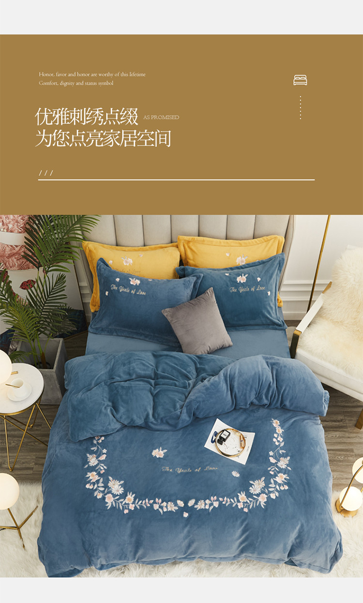 锦罗绣 2021新款高端牛奶绒刺绣款四件套 花好月圆-深蓝