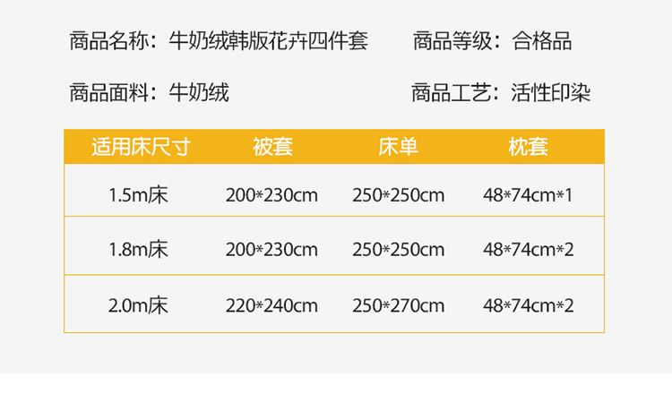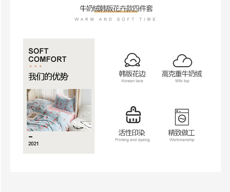 商品名称:(总)眠屿 2021新款牛奶绒韩版花卉款四件套