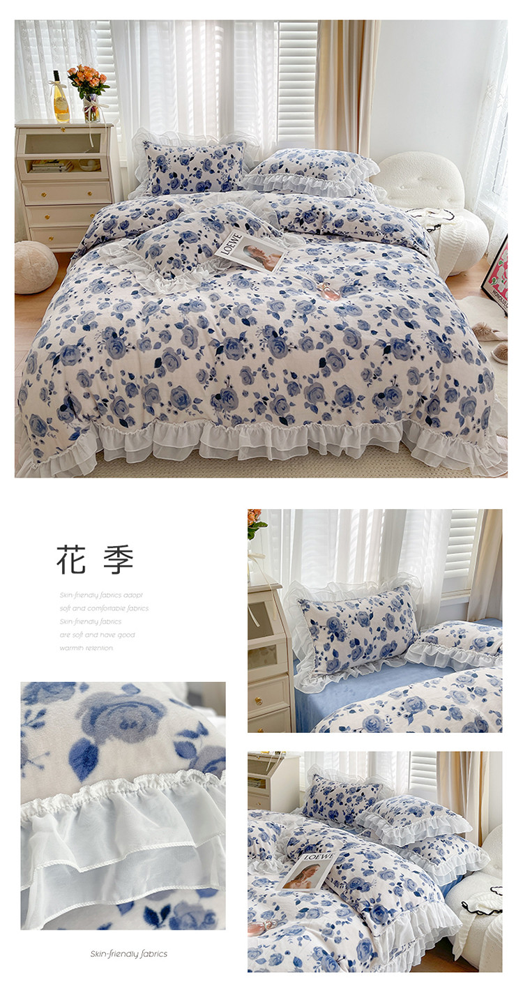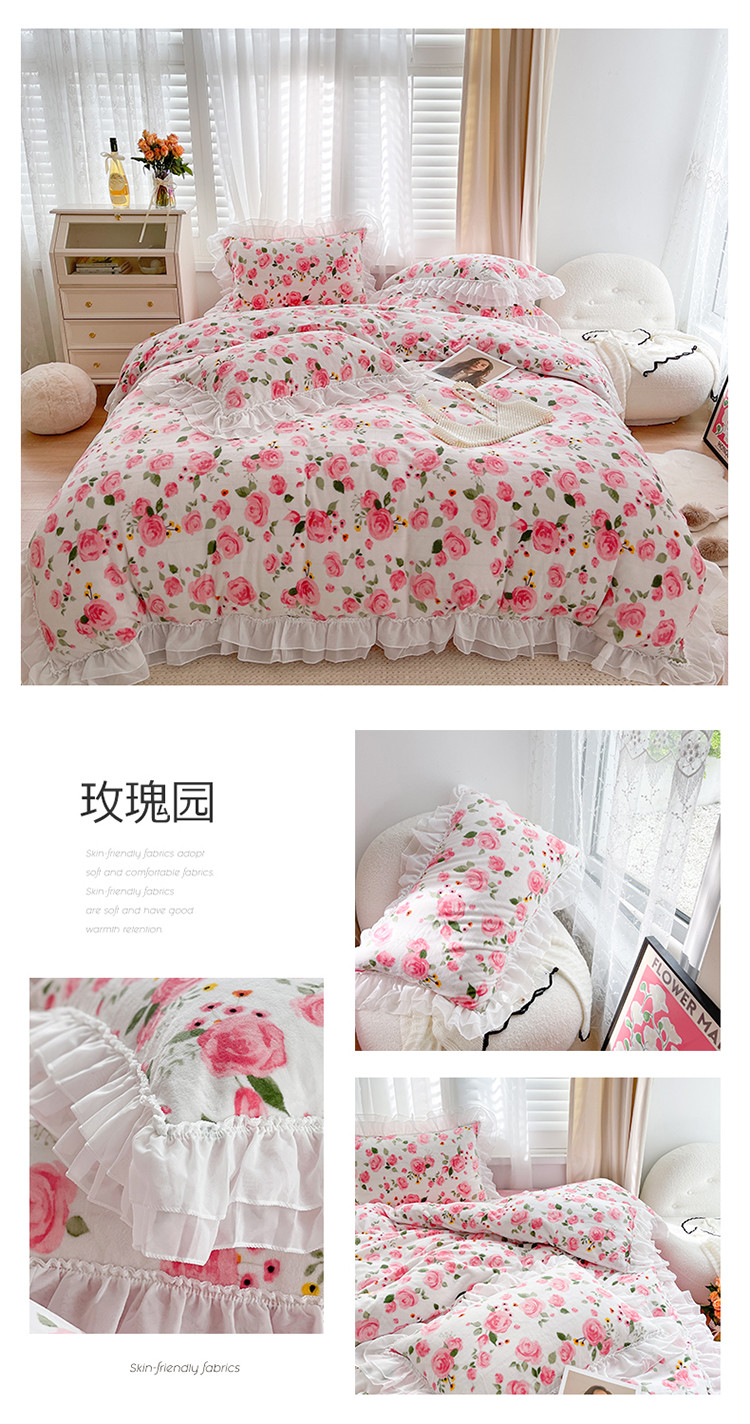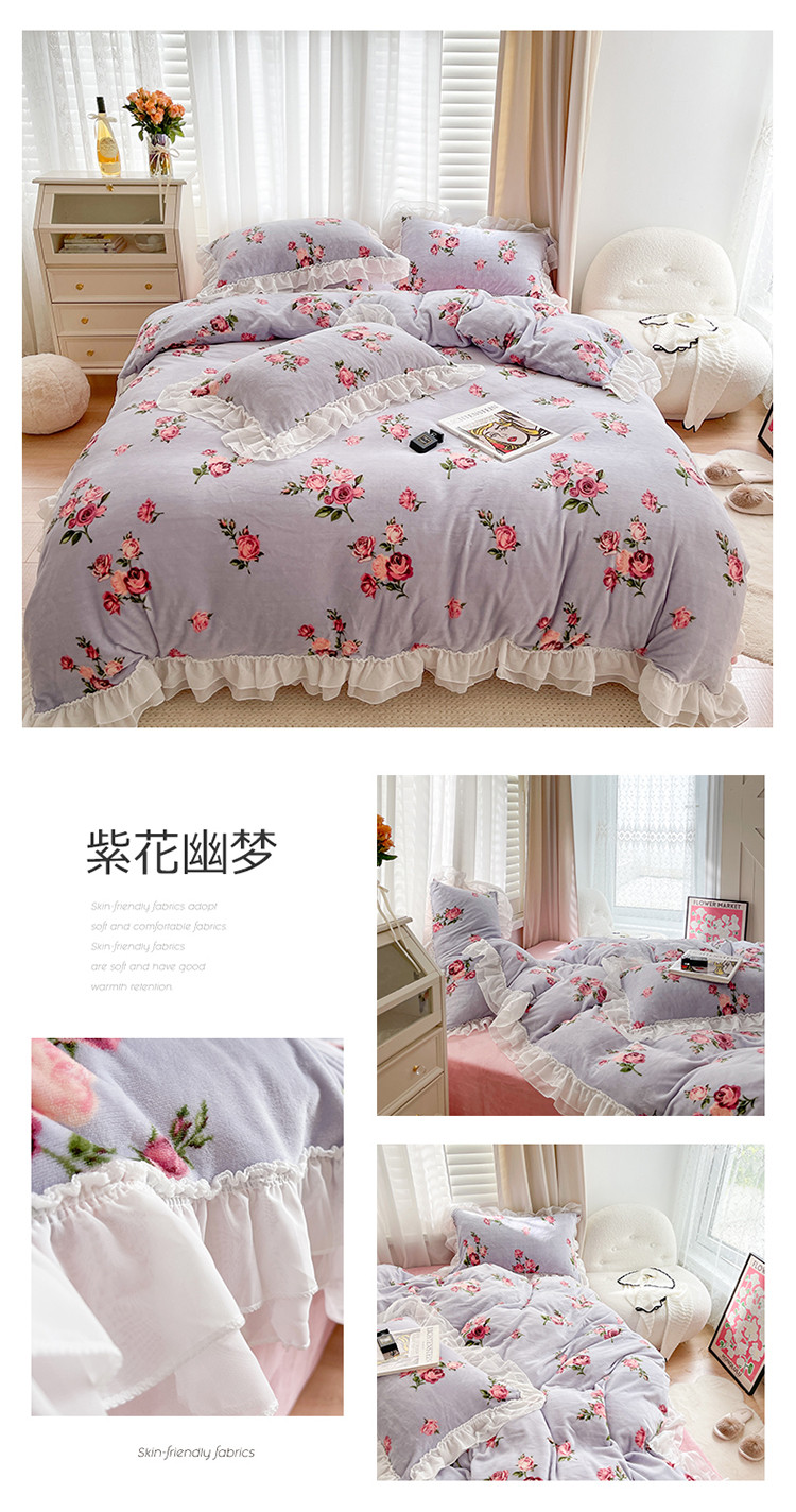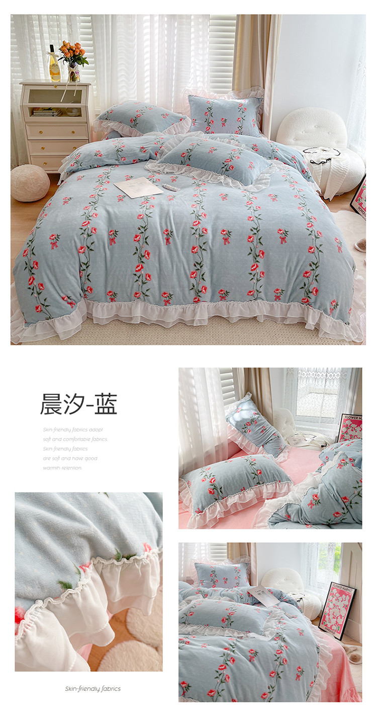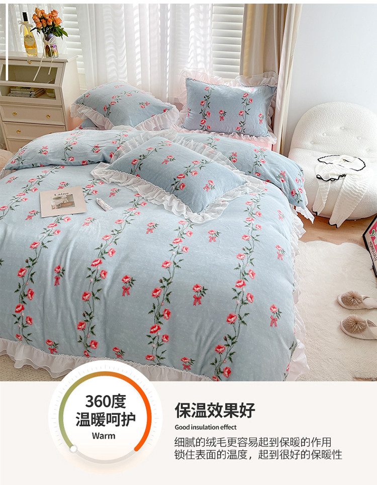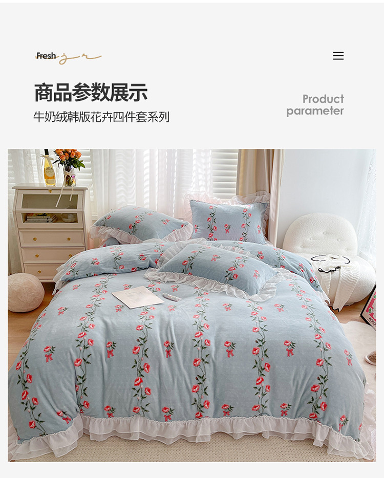 (总)眠屿 2021新款牛奶绒韩版花卉款四件套