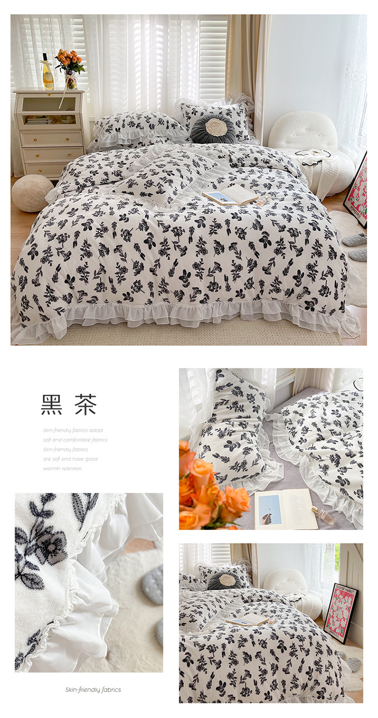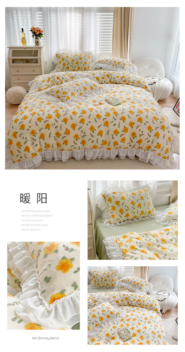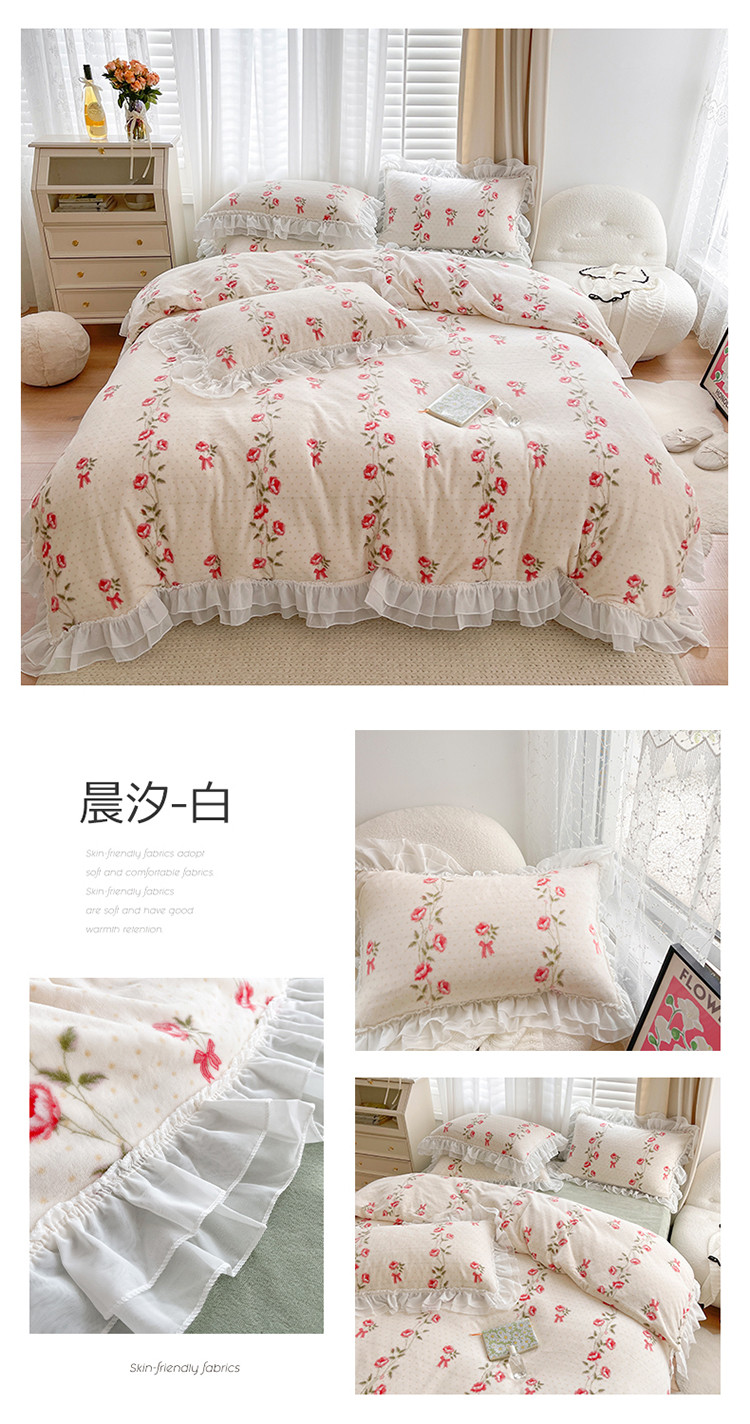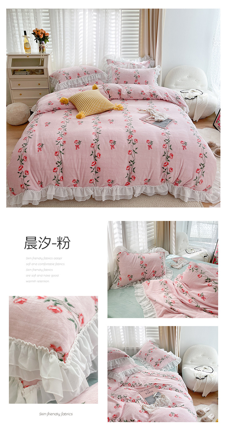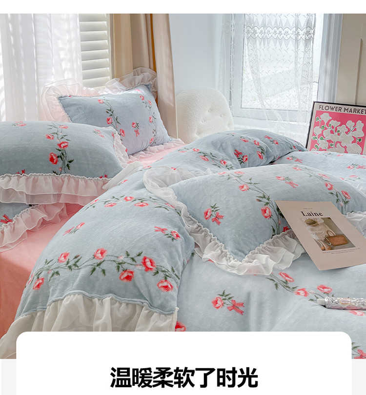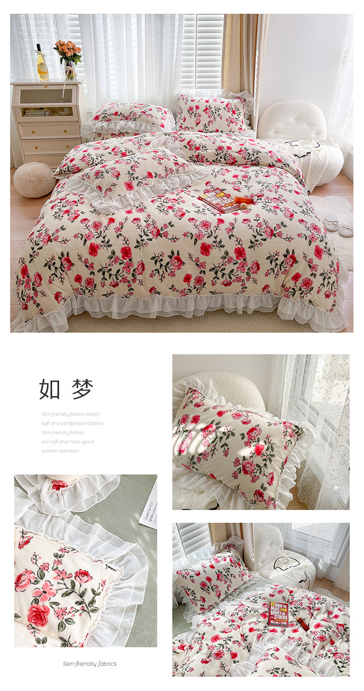 (总)眠屿 2021新款牛奶绒韩版花卉款四件套