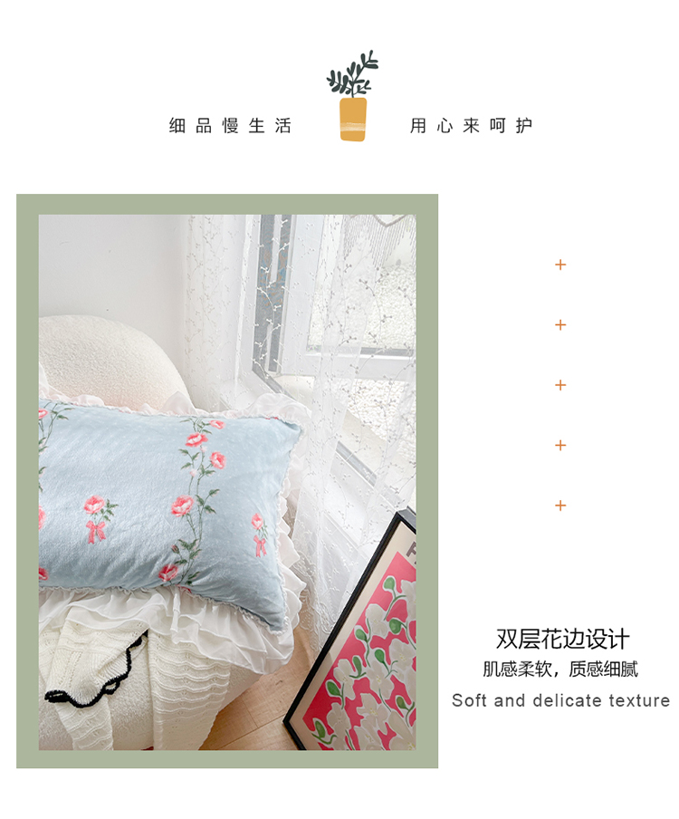 (总)眠屿 2022新款绣花水洗棉四件套花之润,花之润-浅粉,花之润-浅绿