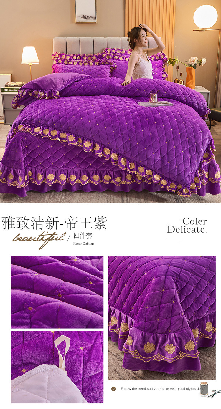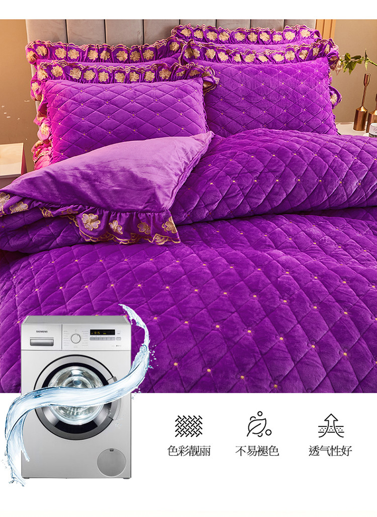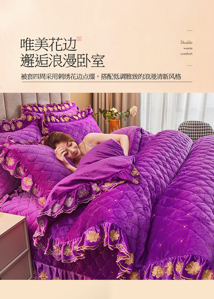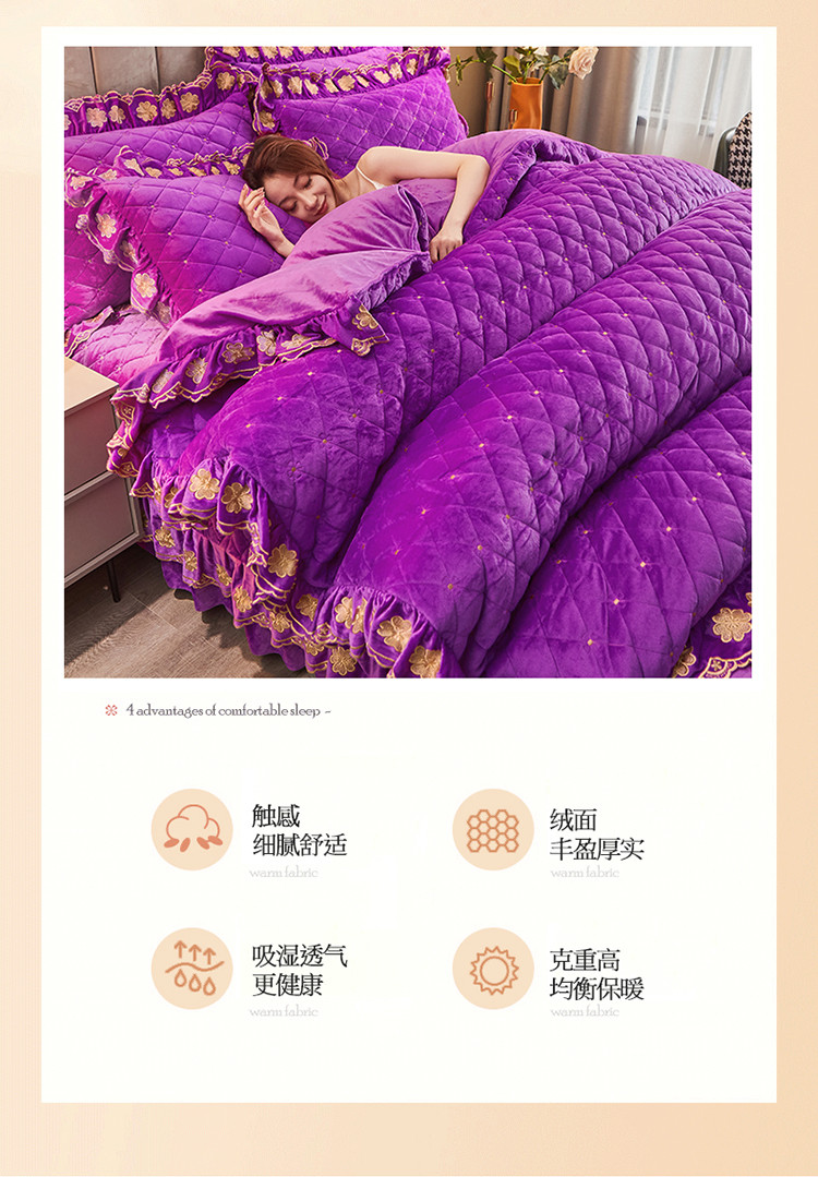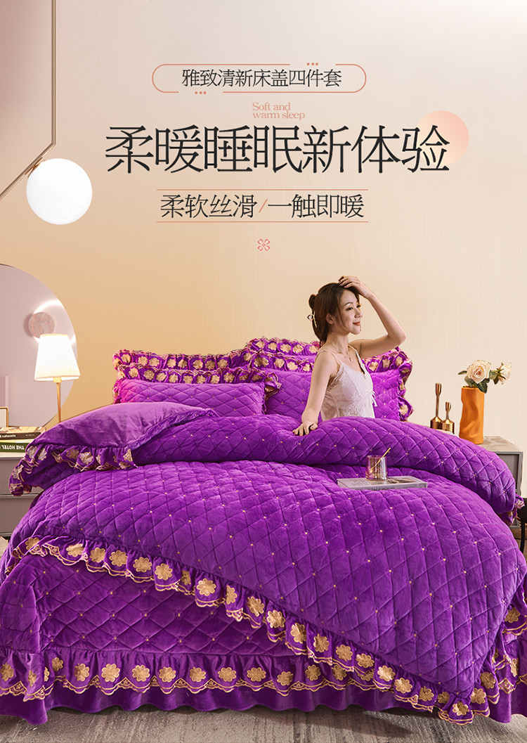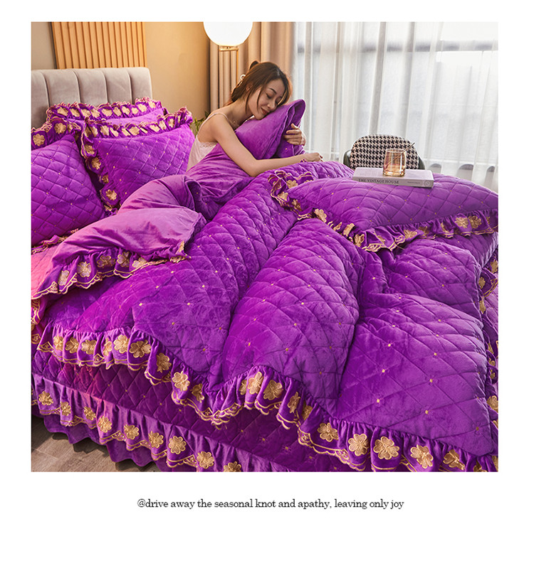 (总)恒爱 2022秋冬水晶绒翩翩花舞夹棉床裙四件套,大红色,豆沙红,橄榄绿,公主粉,桔色,咖啡色,孔雀绿,拉菲红,罗兰紫,玫红色,美人玉,米白色,米驼色,抹茶绿,浅灰色,紫色