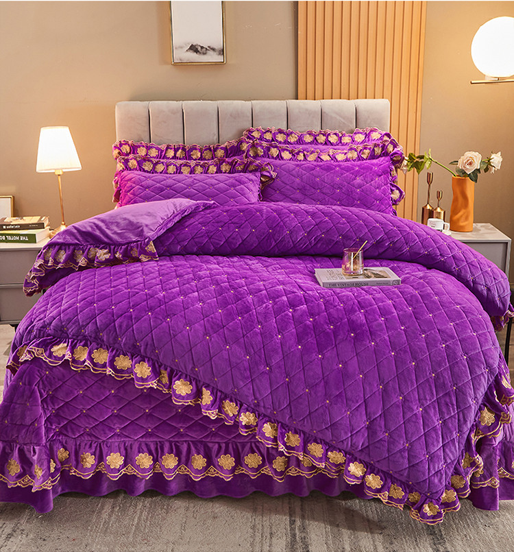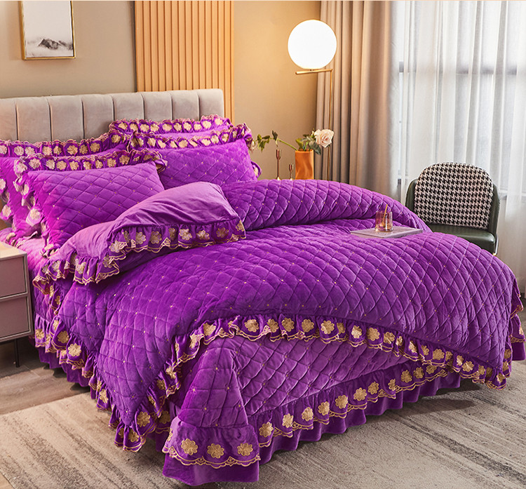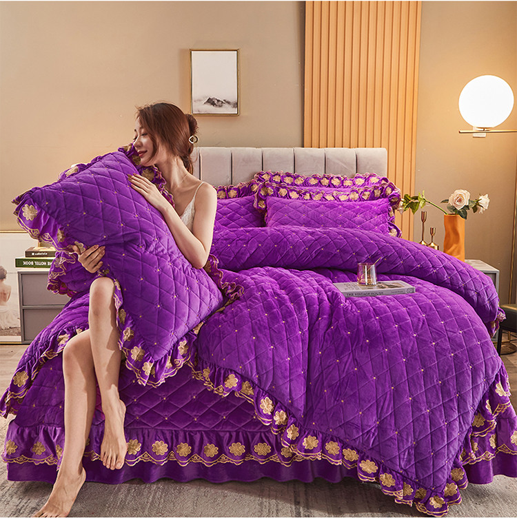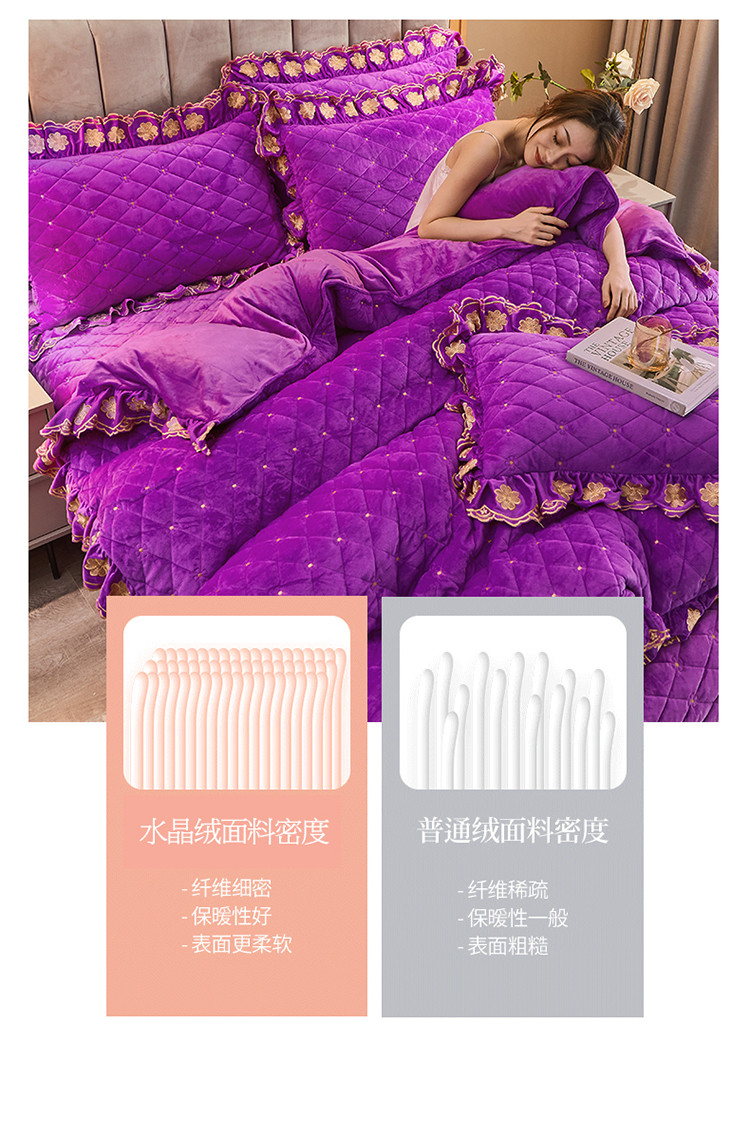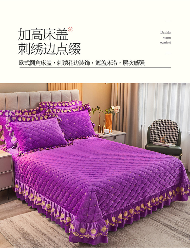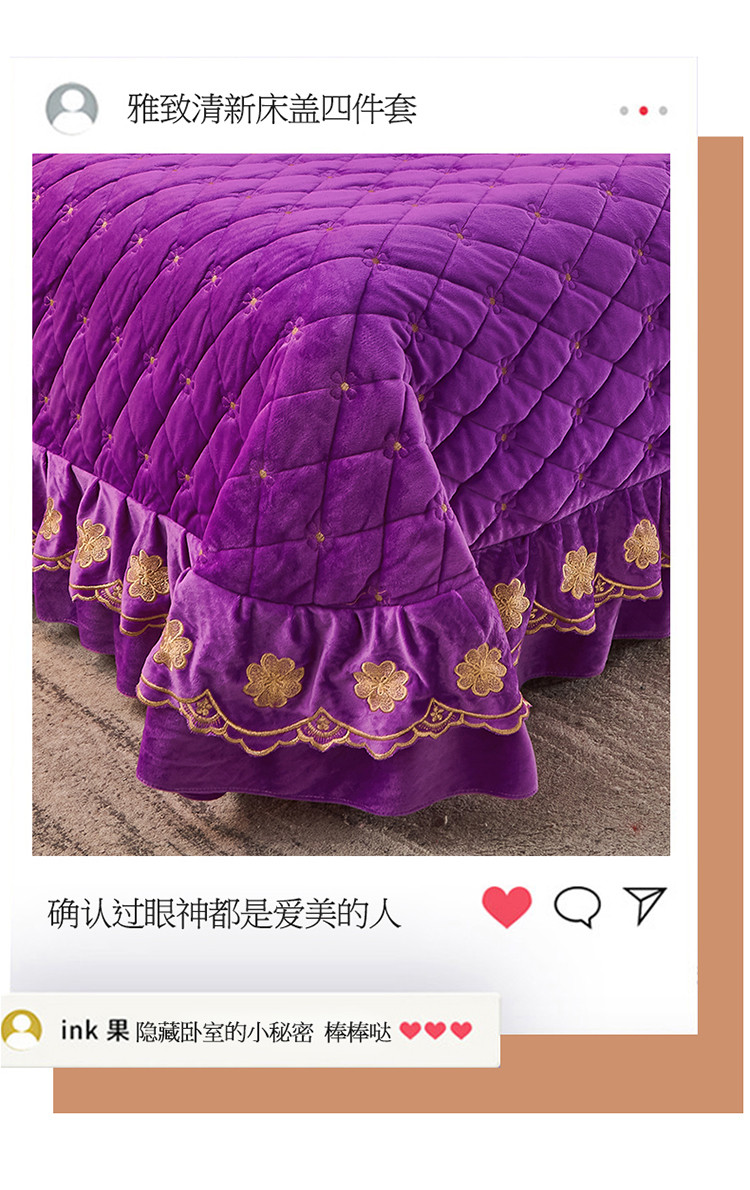 (总)恒爱 2022秋冬水晶绒翩翩花舞夹棉床裙四件套,大红色,豆沙红,橄榄绿,公主粉,桔色,咖啡色,孔雀绿,拉菲红,罗兰紫,玫红色,美人玉,米白色,米驼色,抹茶绿,浅灰色,紫色