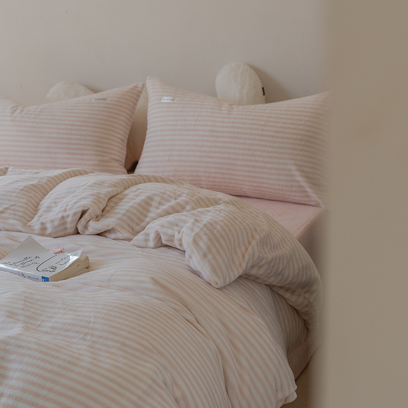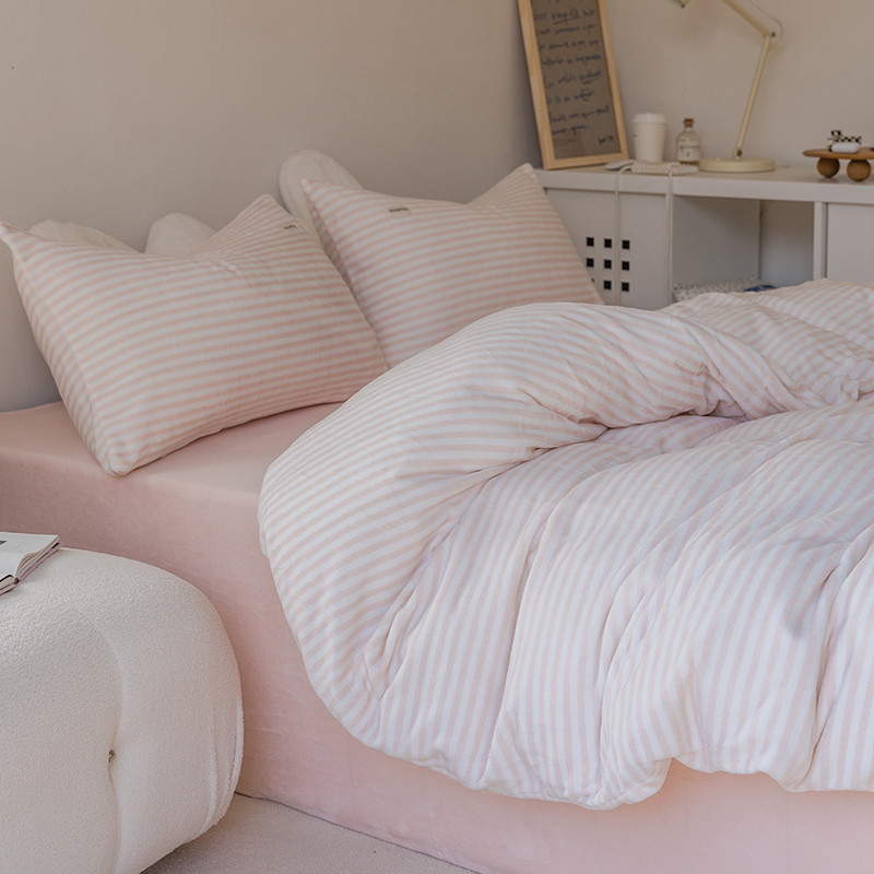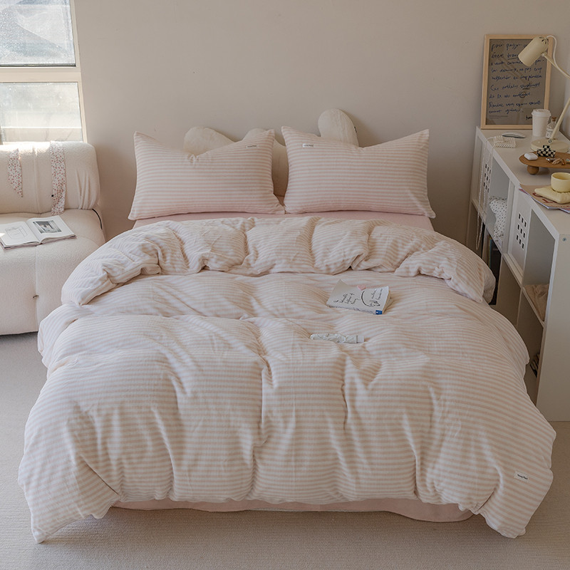 洋铭区 2021新款ab版牛奶绒布丁绒四件套 布丁粉