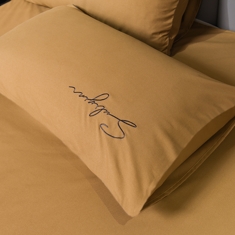 商品名称:孟鑫家纺 2021新款加厚纯色刺绣磨毛四件套 绅士咖