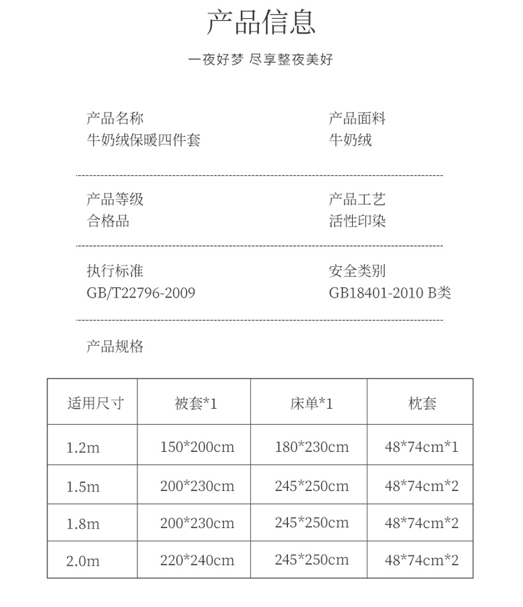2.0m床单款四件套 | ¥110.00 |