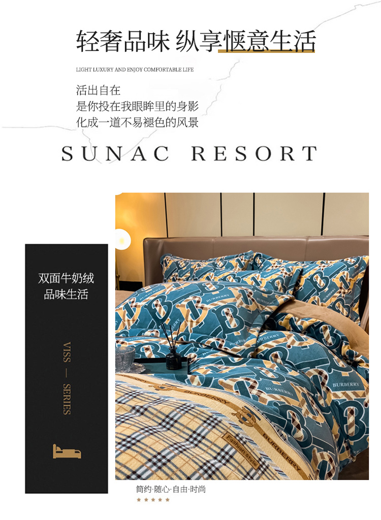 当前位置: 91家纺网 > 商品网购 > 床品套件 > 四件套 > 牛奶绒四件套 > 米莱家纺 2021新款轻奢风加厚保暖牛奶绒四件套 英伦字母