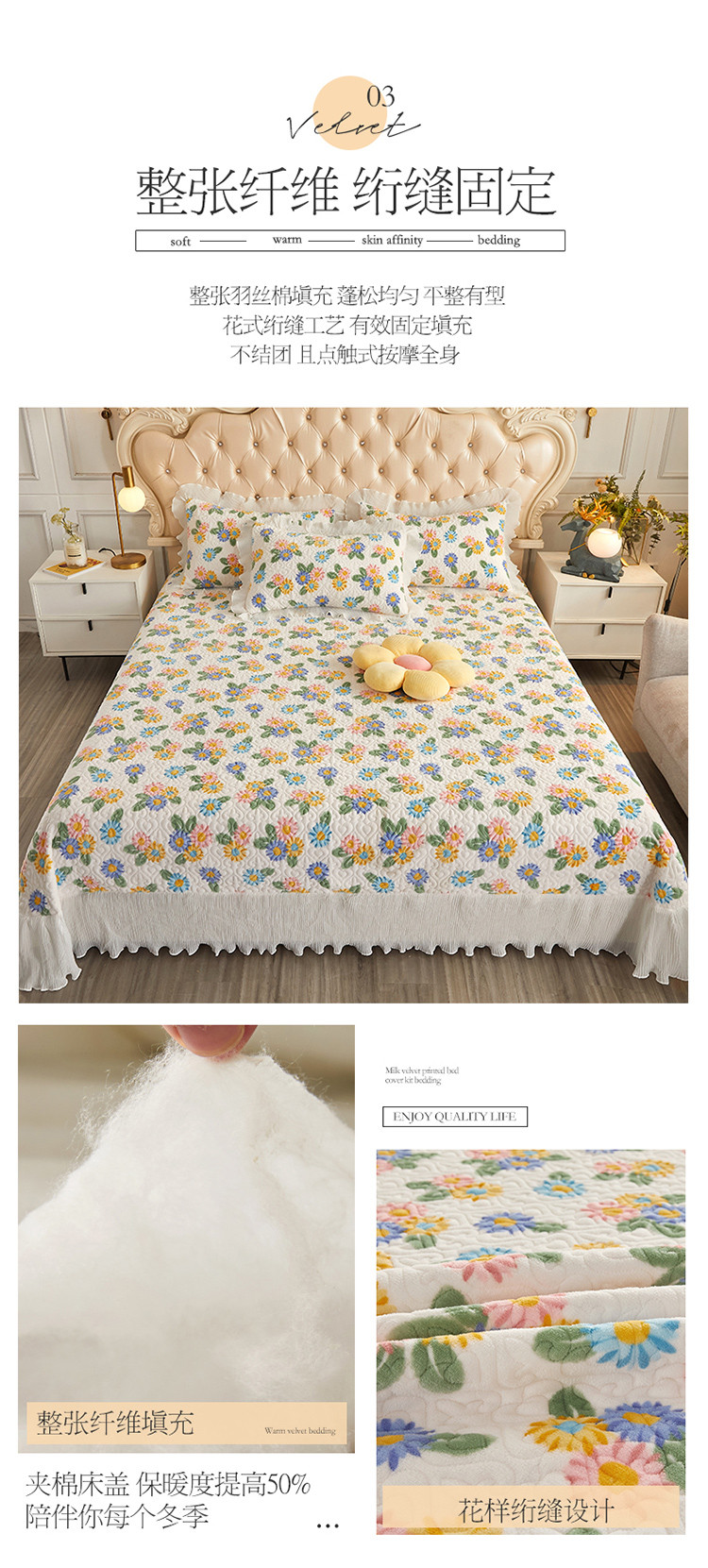 (总)宜凡家纺 2025新款全棉数码印花床裙三件套系列一,静若幽兰,浮云织梦,梦幻花园,陌上花开