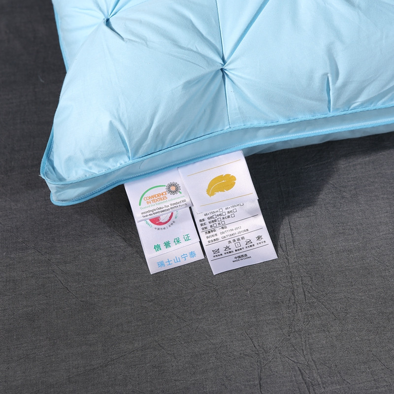 商品名称:羽仙子爆款全棉纽花羽绒枕 鹅绒枕芯 枕头枕套 蓝色