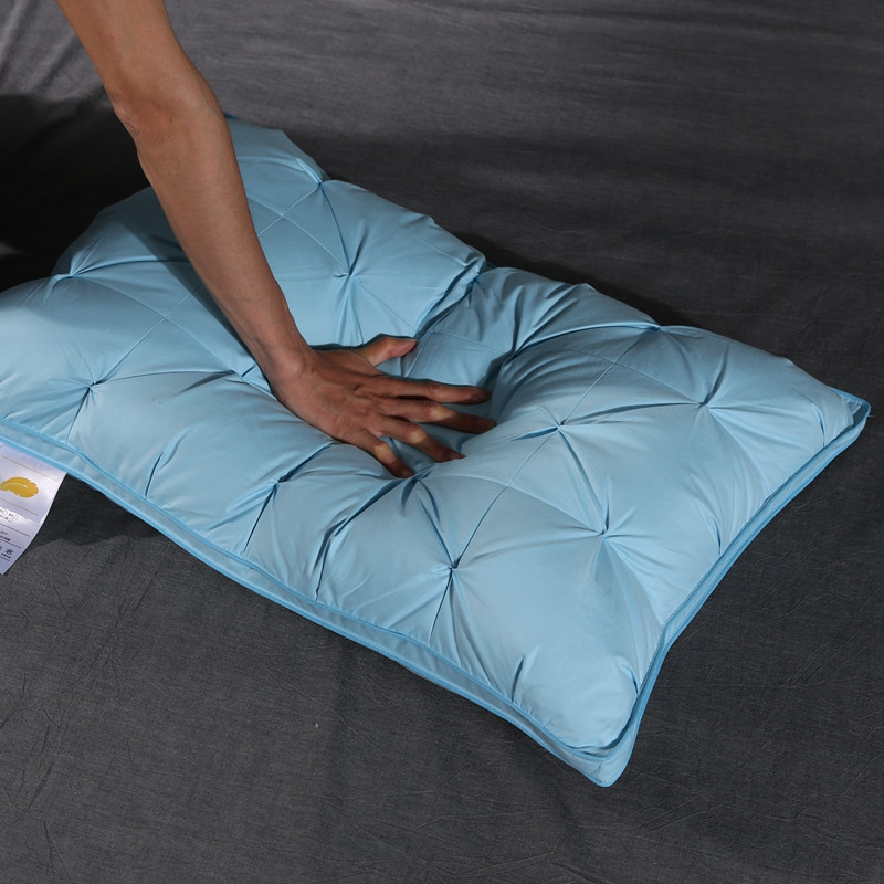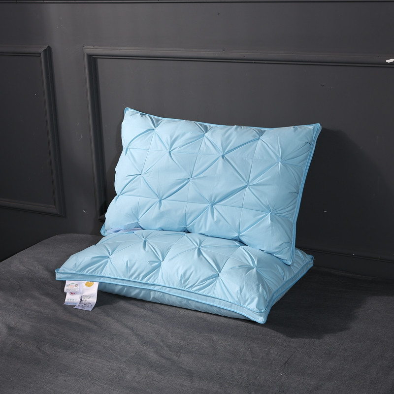 羽仙子爆款全棉纽花羽绒枕 鹅绒枕芯 枕头枕套 蓝色