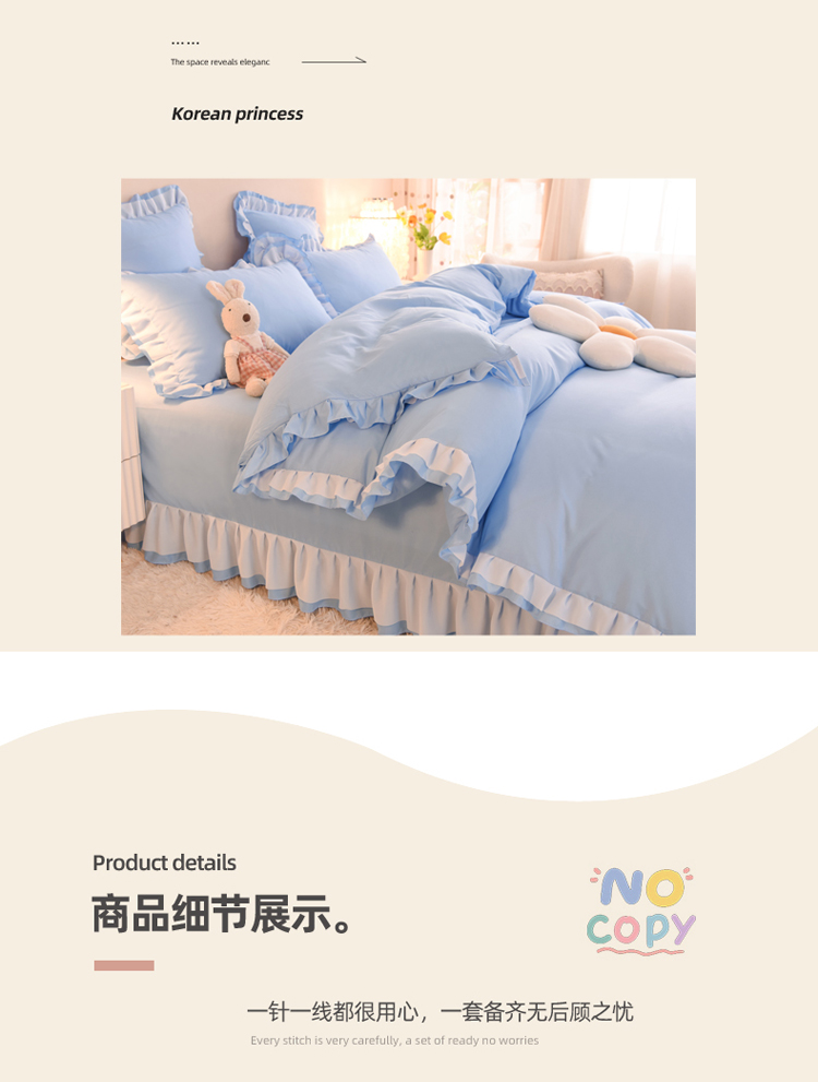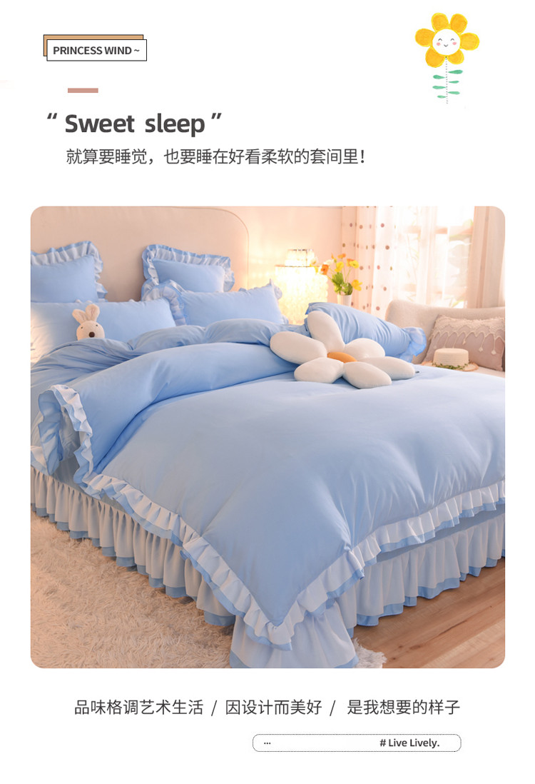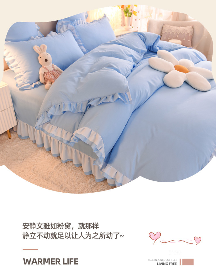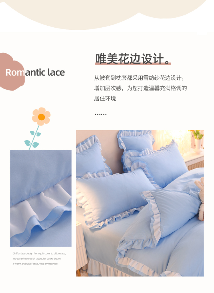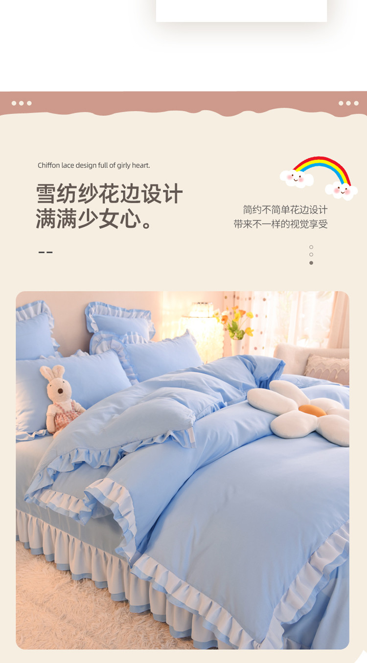 商品名称:欧冠 2022新款公主风爱恋系列四件套 爱恋-天空蓝