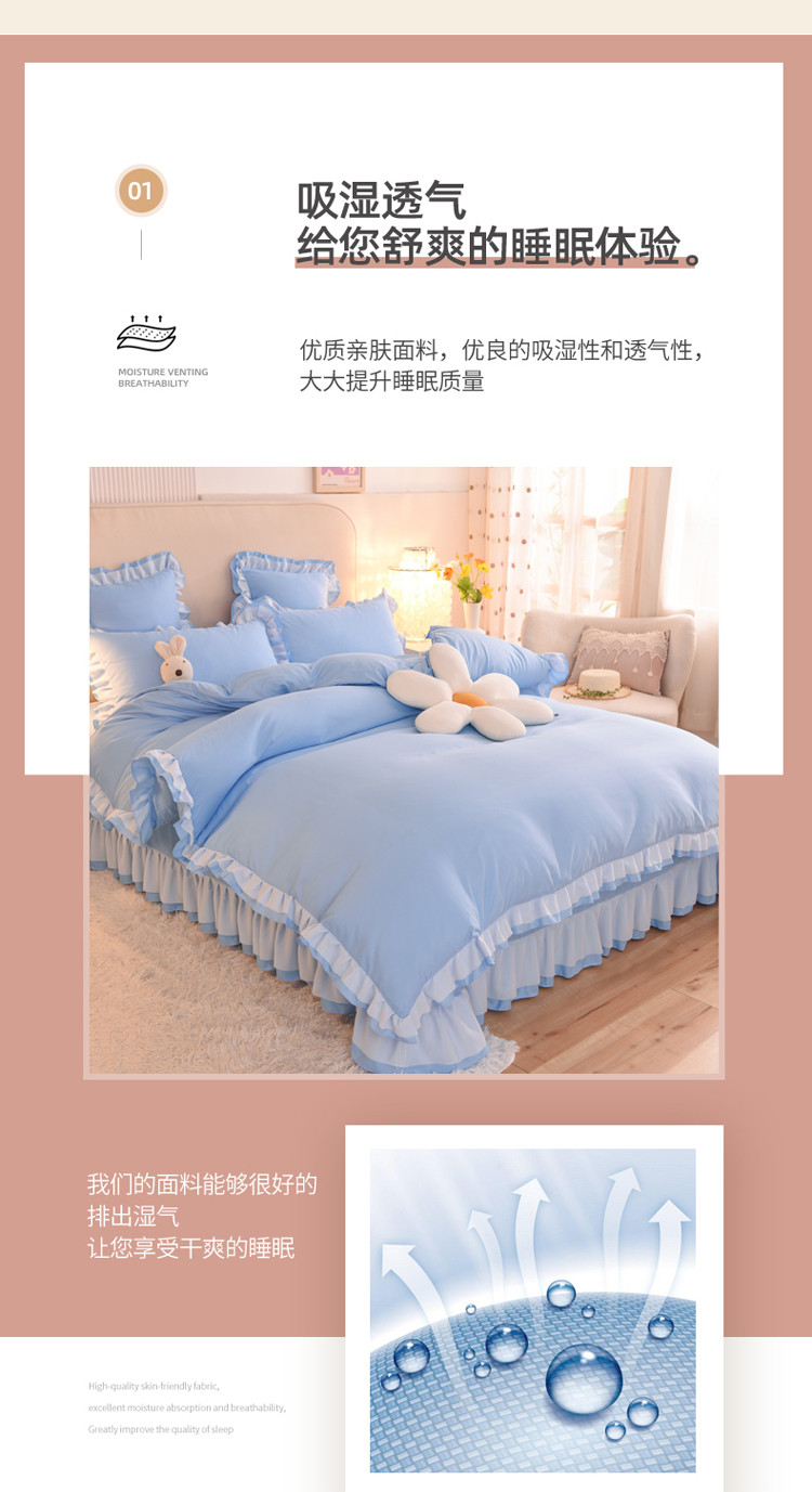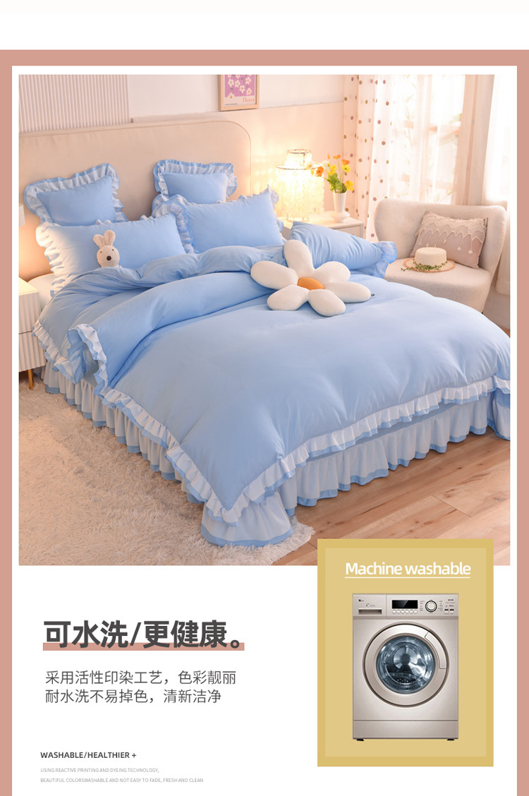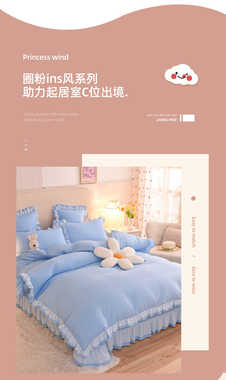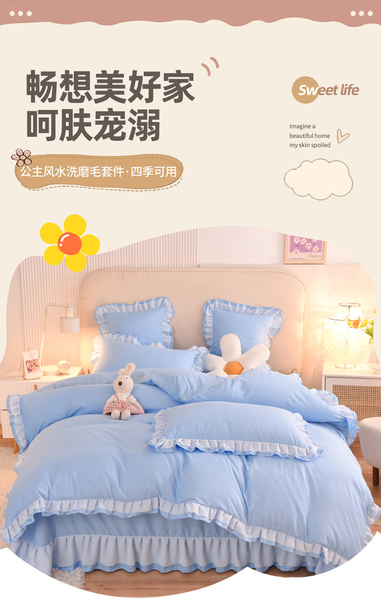 商品名称:欧冠 2022新款公主风爱恋系列四件套 爱恋-天空蓝