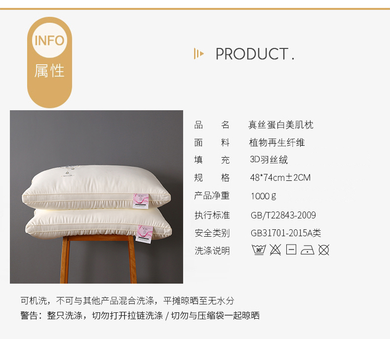 商品名称:植物再生纤维真丝羽丝绒枕头可水洗刺绣成人护颈单人枕芯软枕