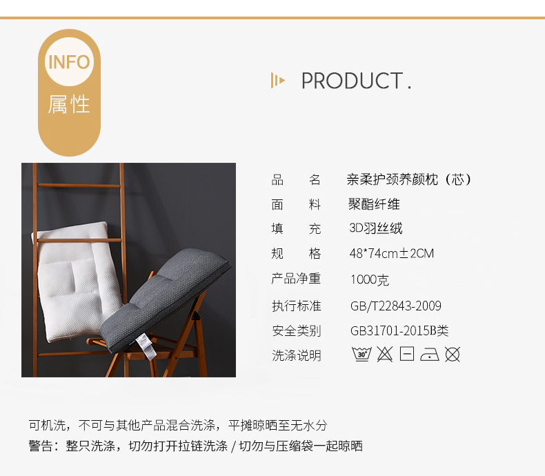 商品名称:加厚针织轻柔养颜羽丝绒枕芯护颈枕头单人分区定型成人安睡枕