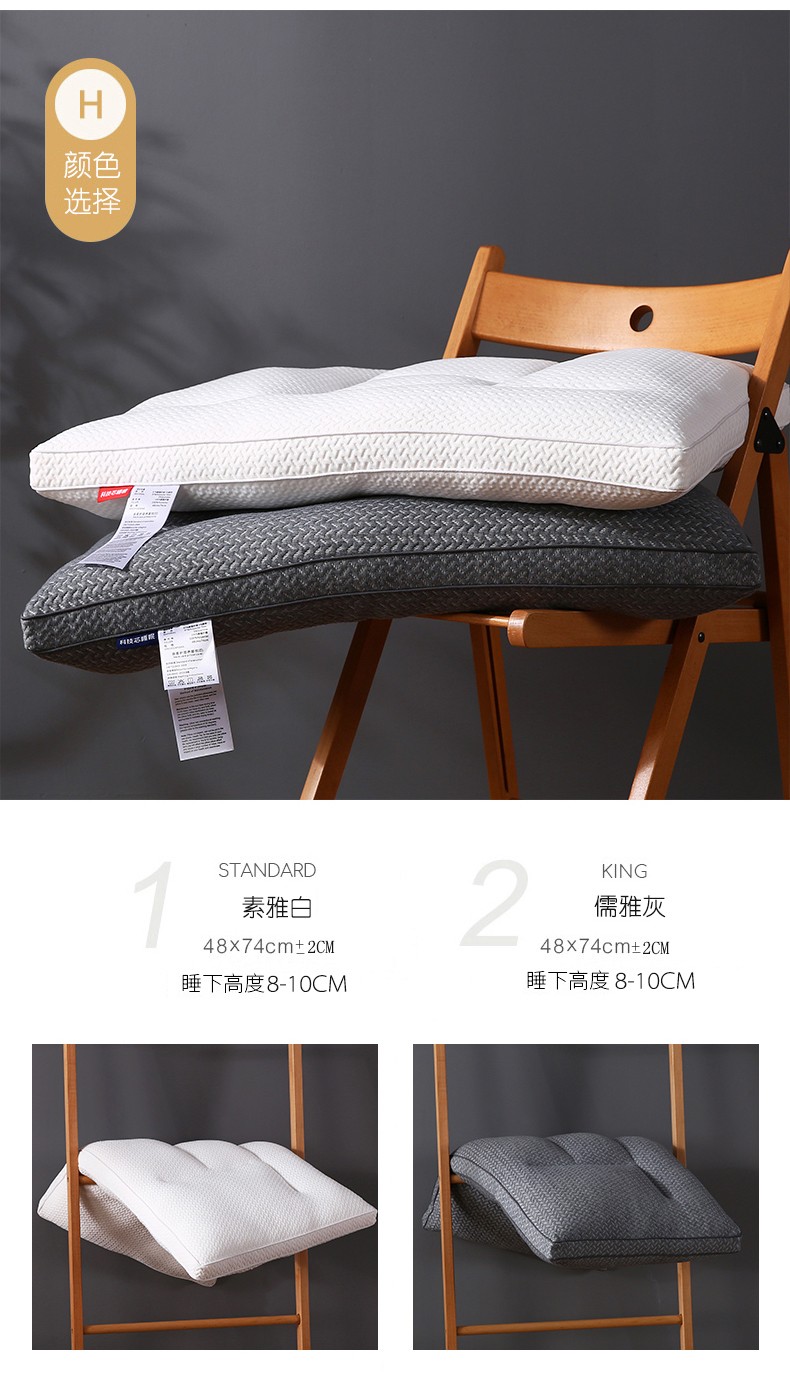 加厚针织轻柔养颜羽丝绒枕芯护颈枕头单人分区定型成人安睡枕,轻柔护颈养颜枕-素雅白,轻柔护颈养颜枕-儒雅灰