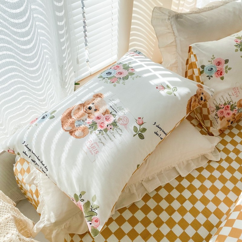 (总)优彩 2025新款数码印花贴布绣全棉四件套,春田小熊,温暖小窝,游乐园