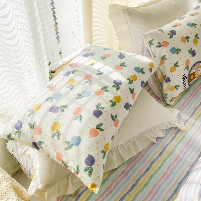 (总)优彩 2025新款全棉40支水洗棉水果刺绣系列四件套,蜜桃,葡萄