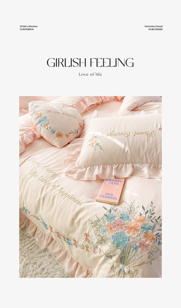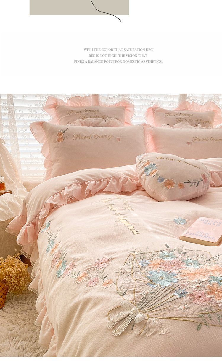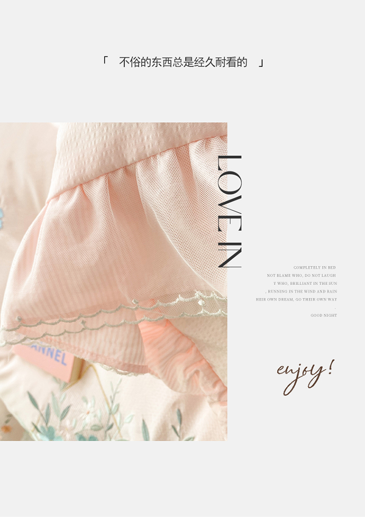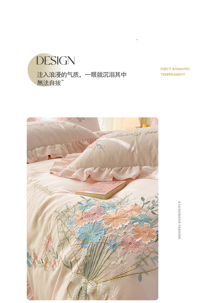 艾晶美家纺 2022新款莱赛尔天丝泡泡纱绣花四件套 巴黎春天-柔粉