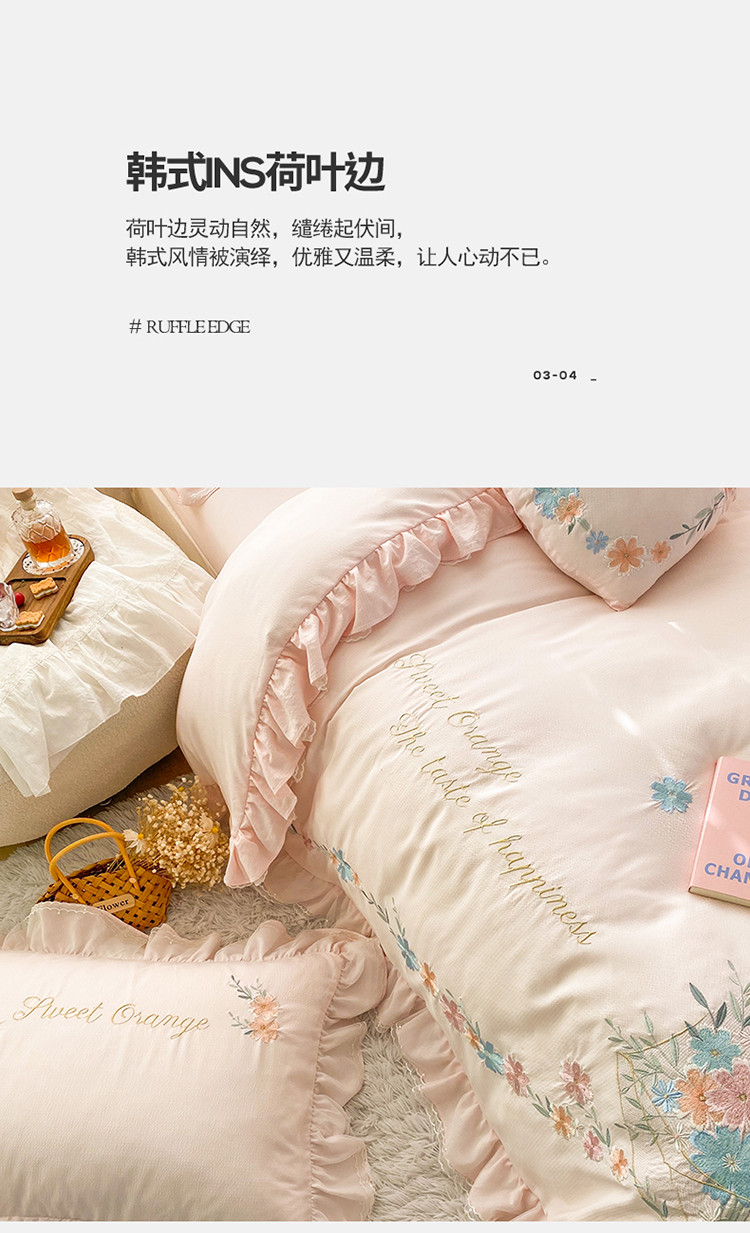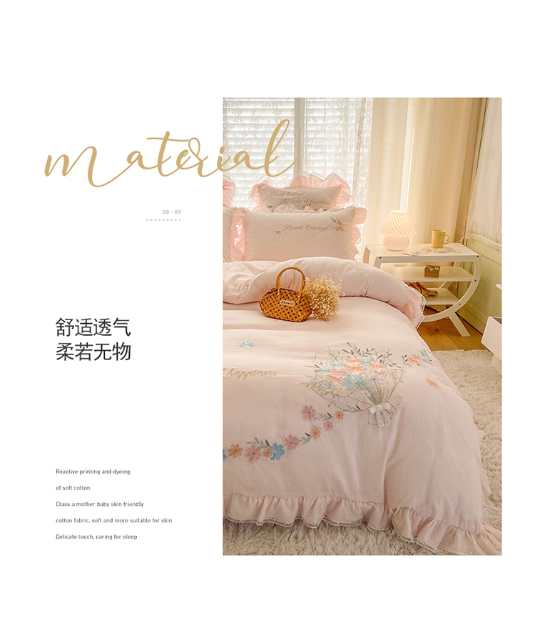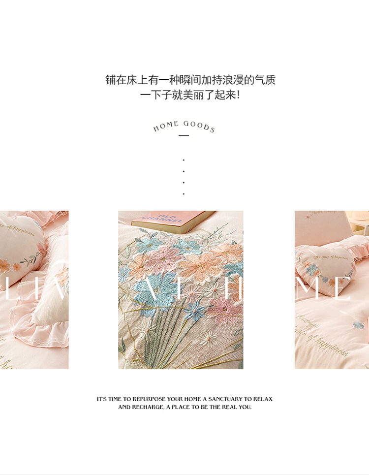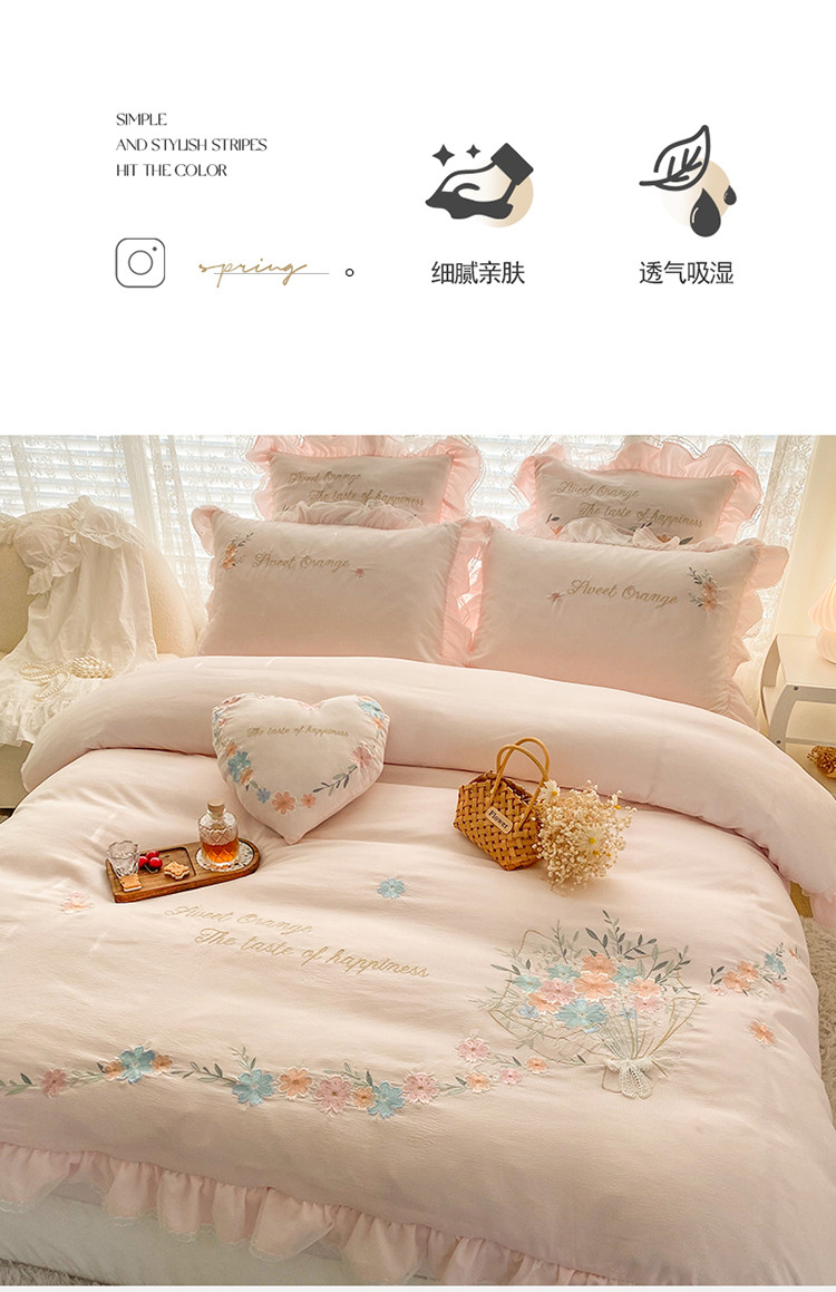 艾晶美家纺 2022新款莱赛尔天丝泡泡纱绣花四件套 巴黎春天-柔粉