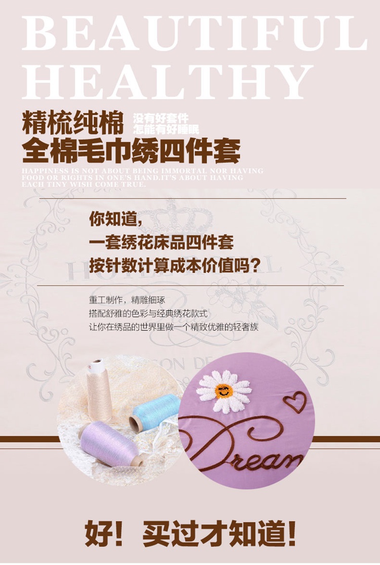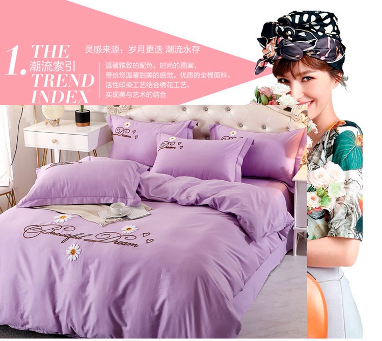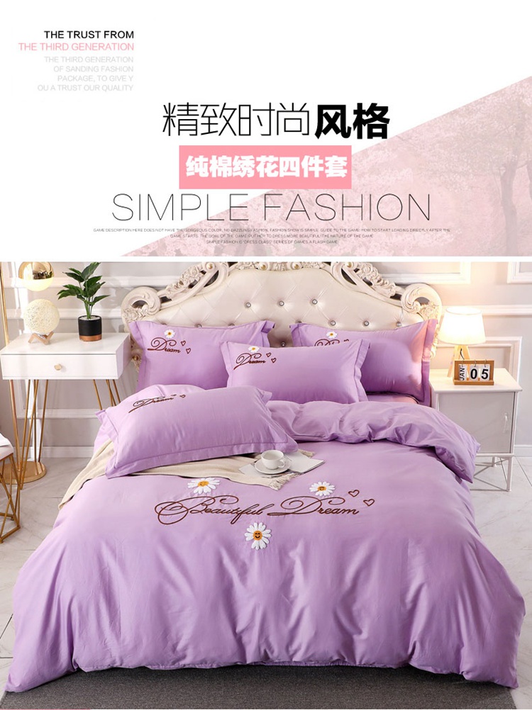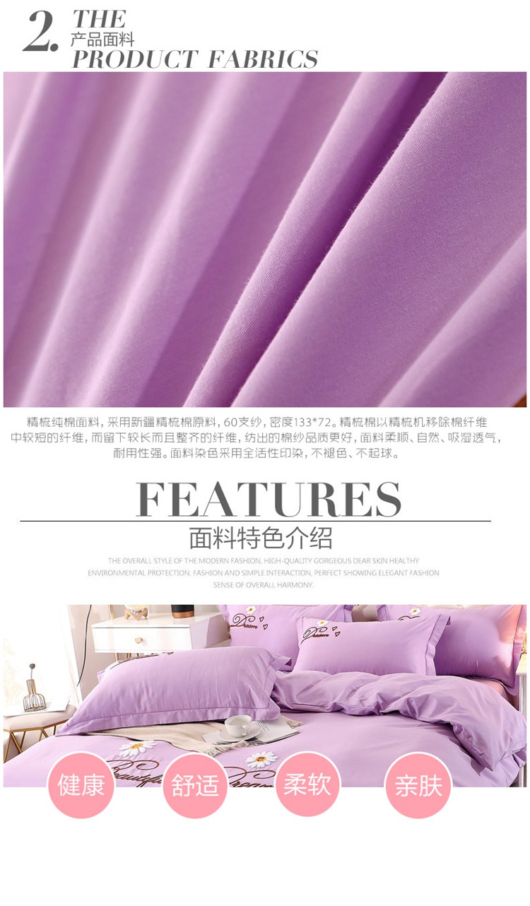 商品名称:2022晶缦雏菊全棉13372毛巾绣四件套 美梦雏菊-浅紫