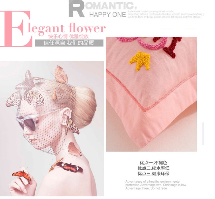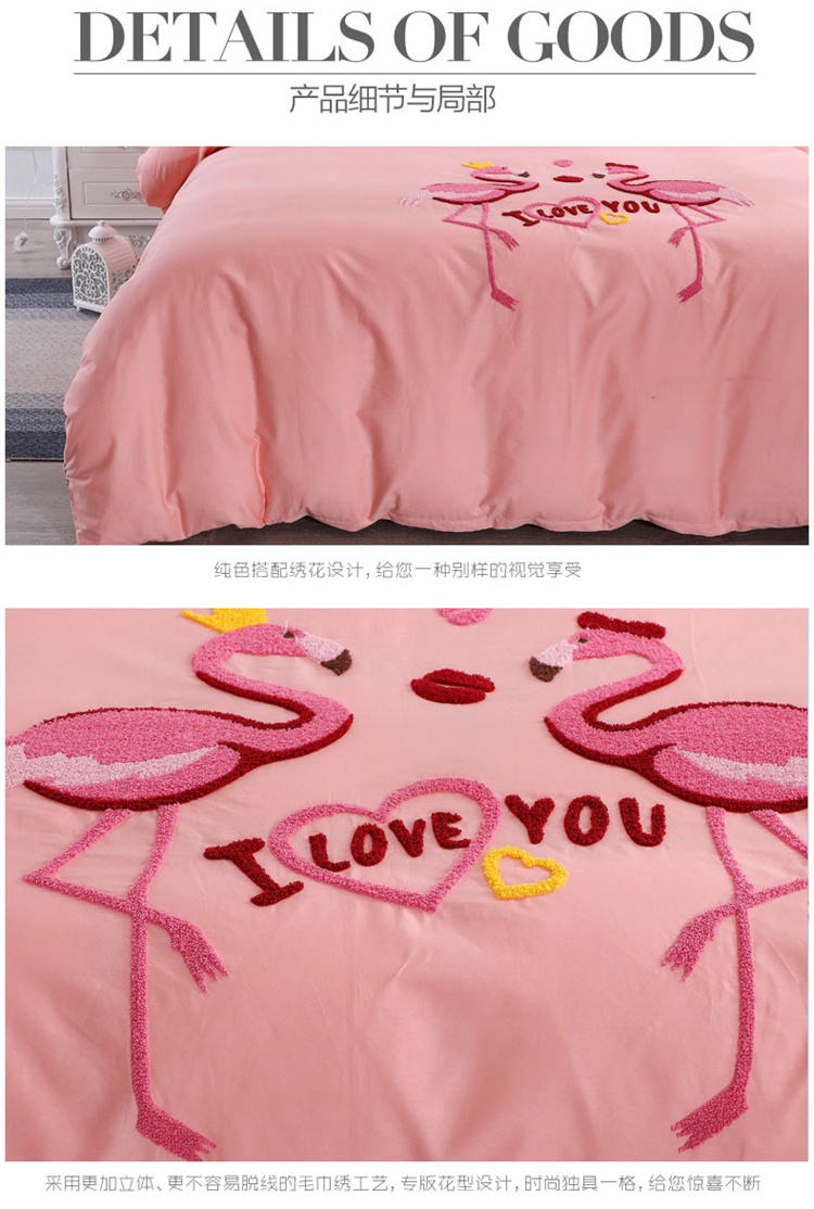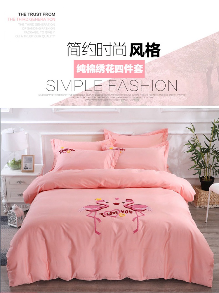2022晶缦全棉13372纯色毛巾绣绣花四件套 幸福烈鸟玉色