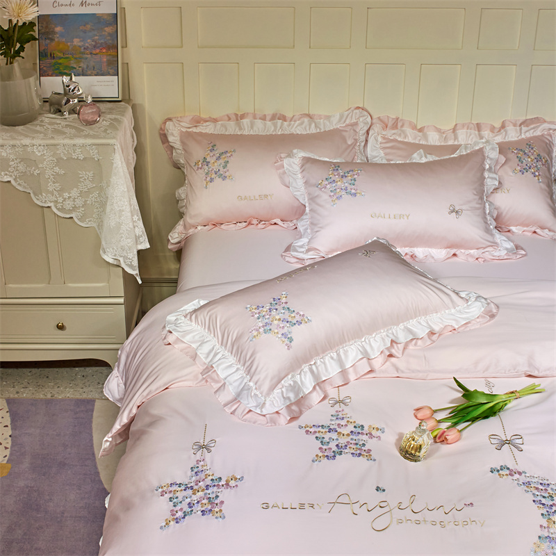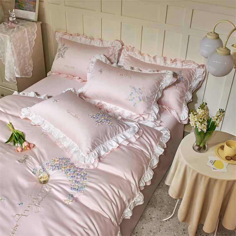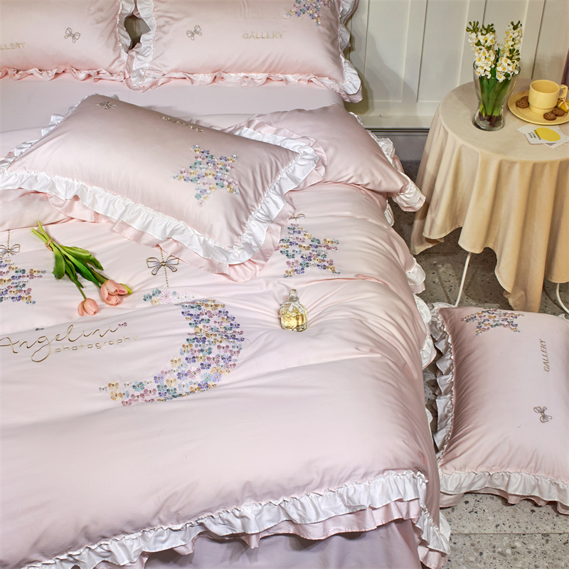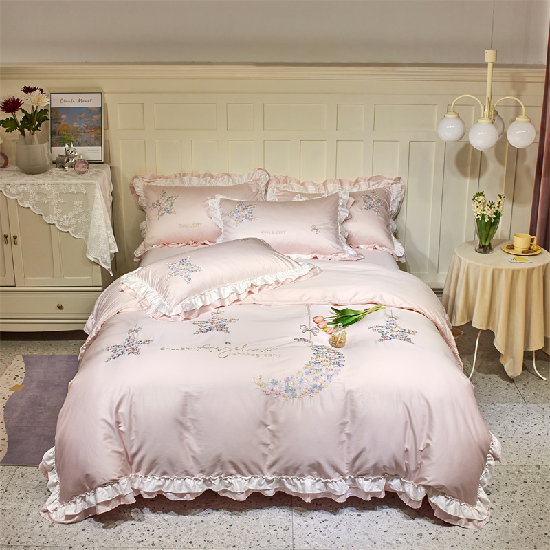 商品名称:星尚 2022新款长绒棉四件套-月亮仙子 粉