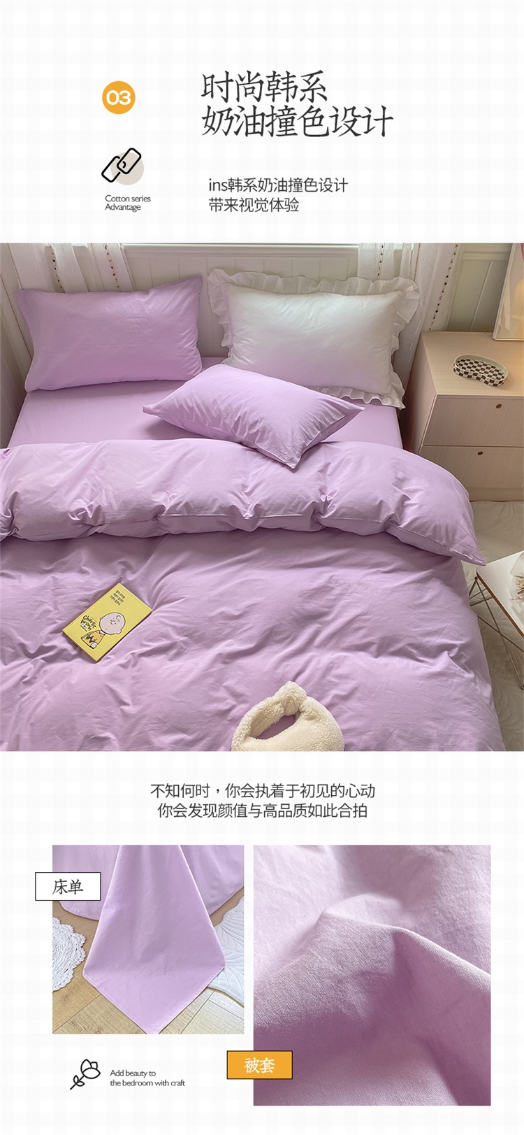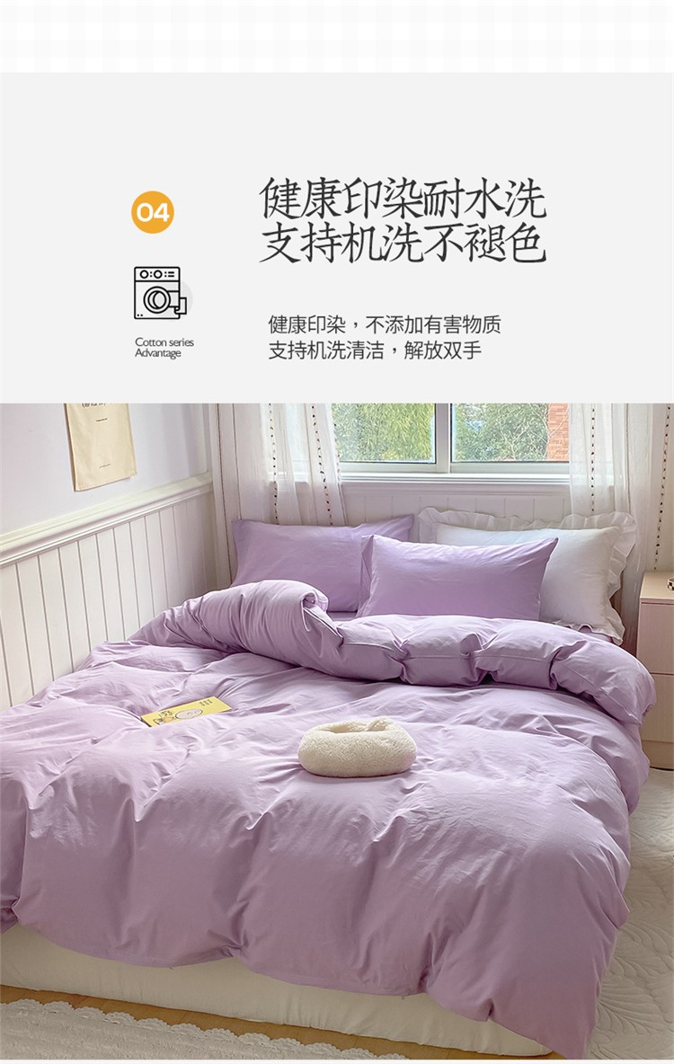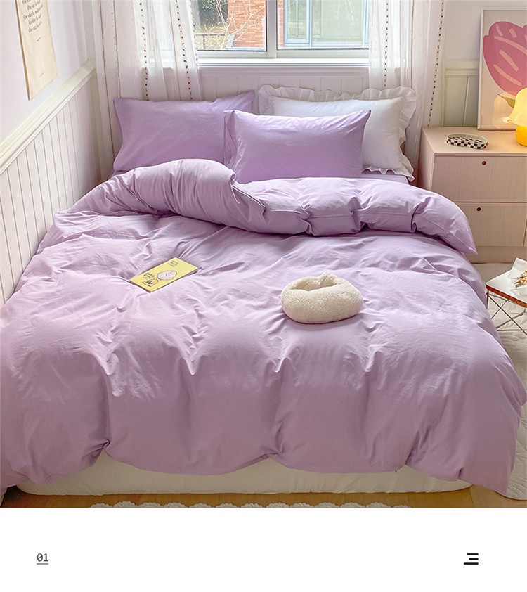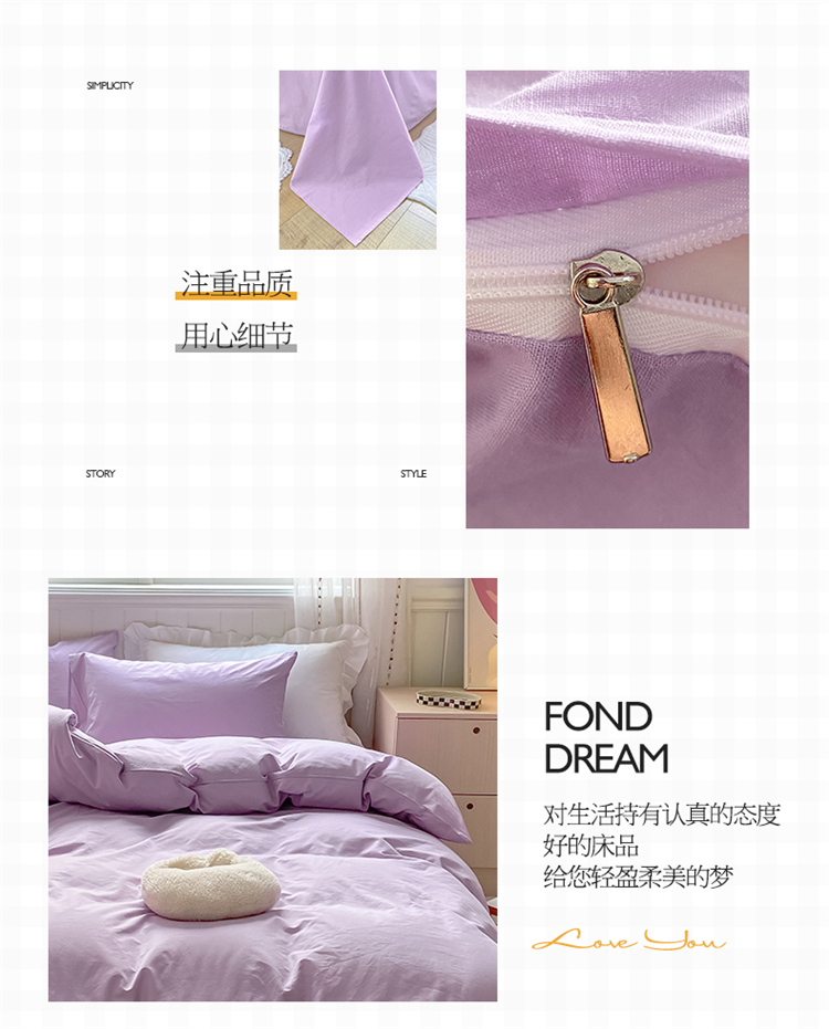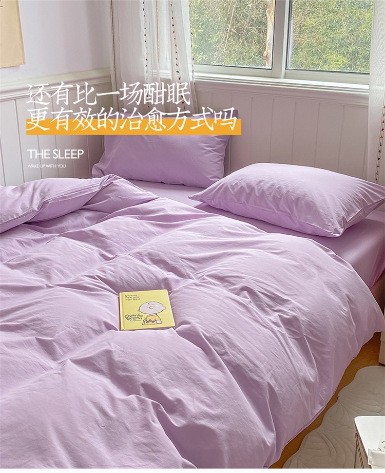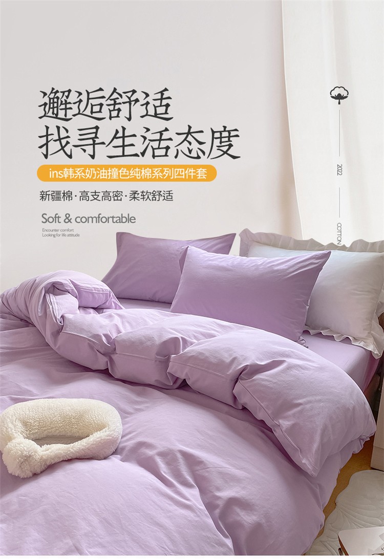 商品名称:桃子家居 2022韩系ins奶油条格撞色纯棉四件套香芋紫