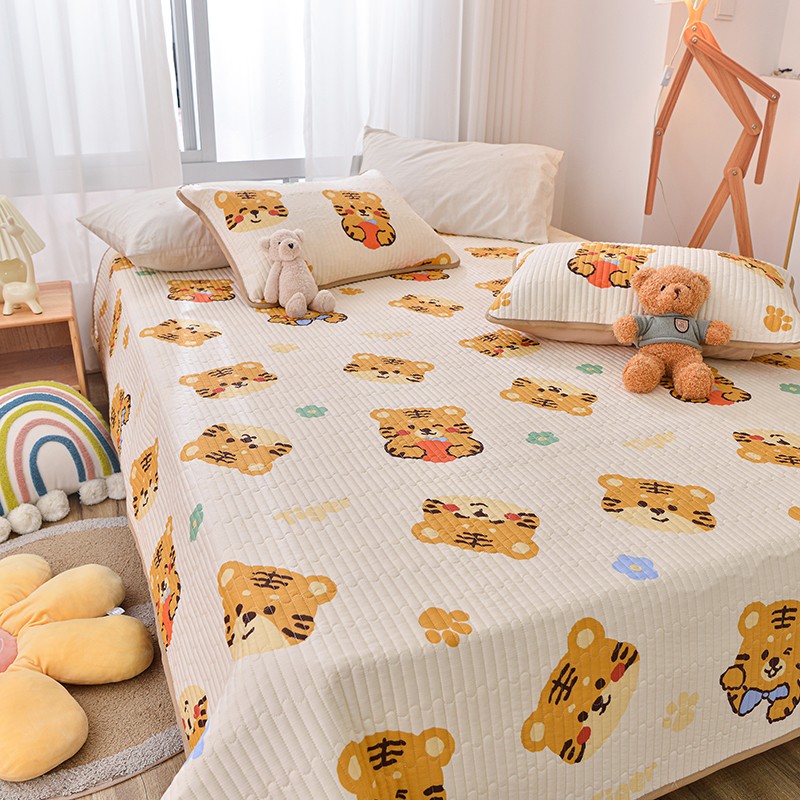 茉夕家纺 2022新款单面纯棉床盖 欢乐虎