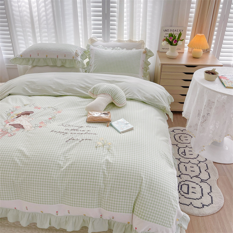 嗨购 2022新款40支水洗棉刺绣花边四件套-春日秋千 春日秋千-绿